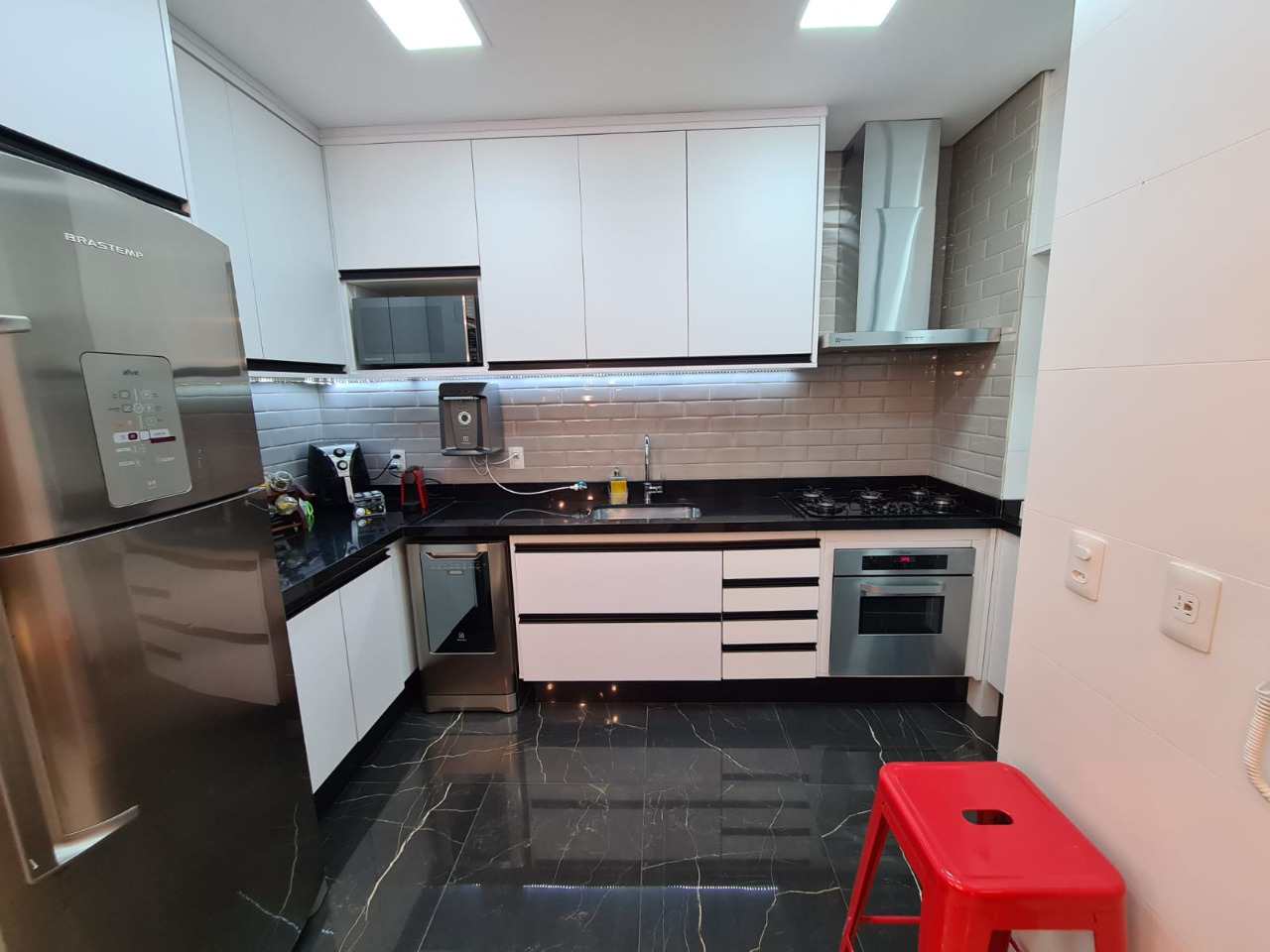 Excelente apartamento novo no bairro do Marapé a poucos minutos do Gonzaga, com 77 m², contendo 2 dormitórios, sendo 1 suíte, sistema de fechamento automatizado das janelas dos quartos, sala p/ 2 ambientes, cozinha americana e a verdadeira varanda gourmet com churrasqueira. A vista é livre e virada para o sol nascente.1 vaga de garagem demarcada, Prédio novo com lazer.