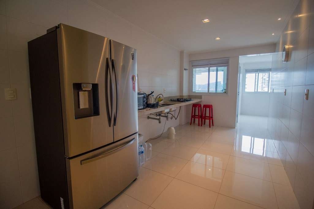Cozinha toda equipada com eletrodomésticos e planejados, dependência e WC de serviço.