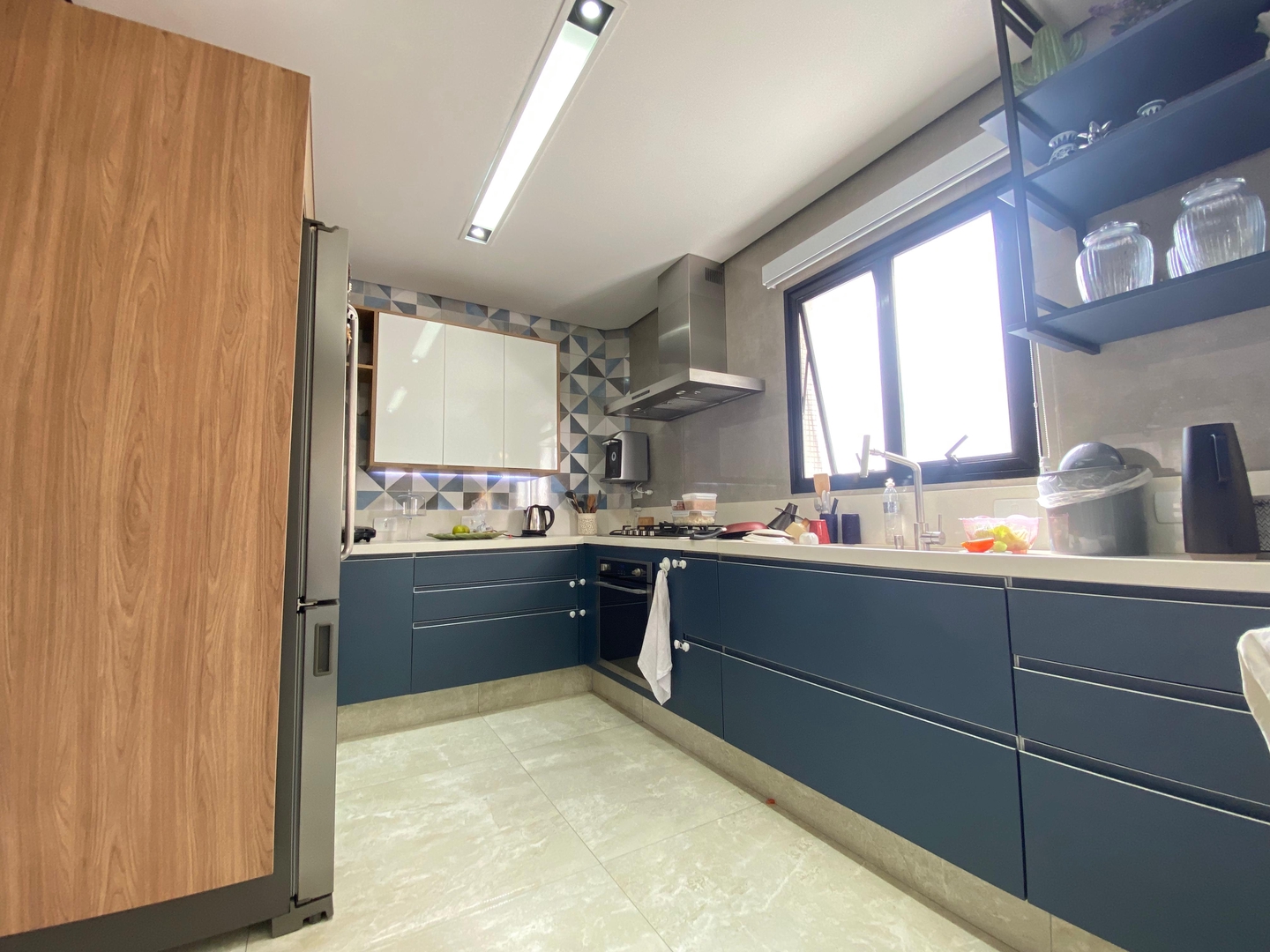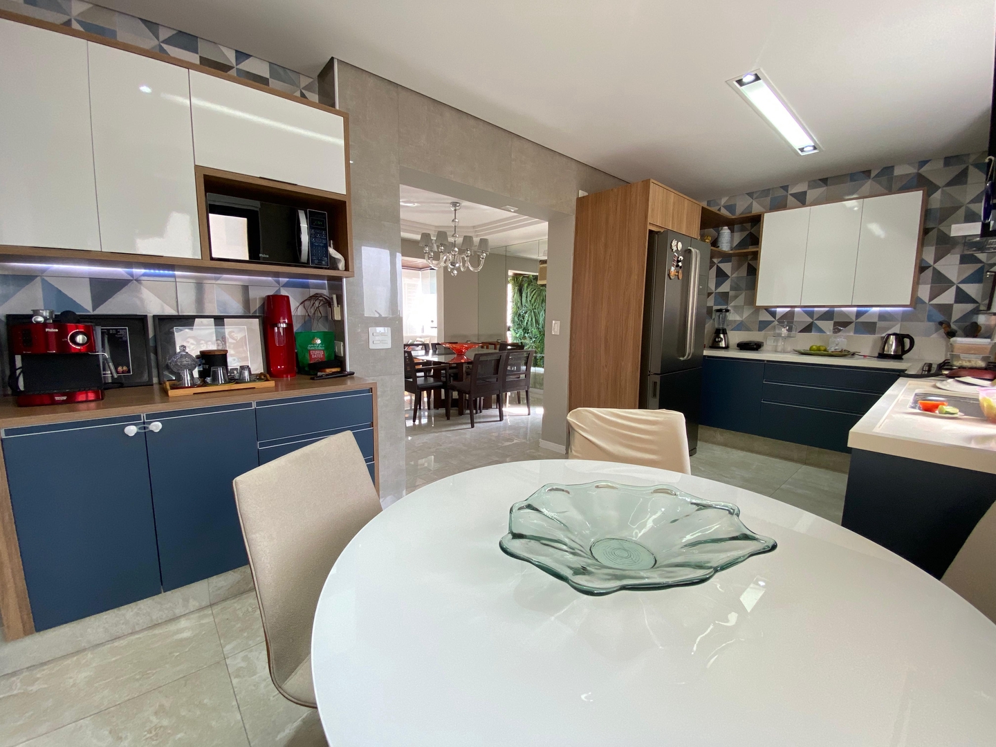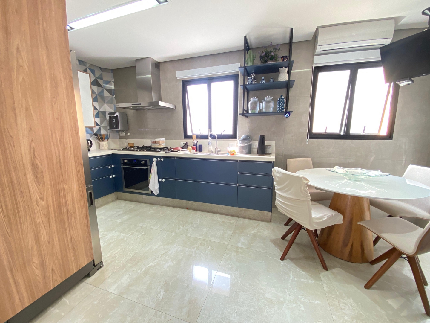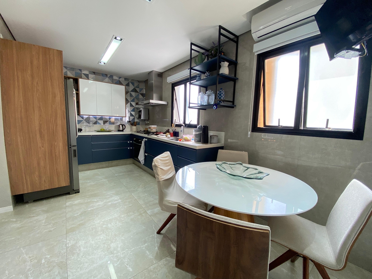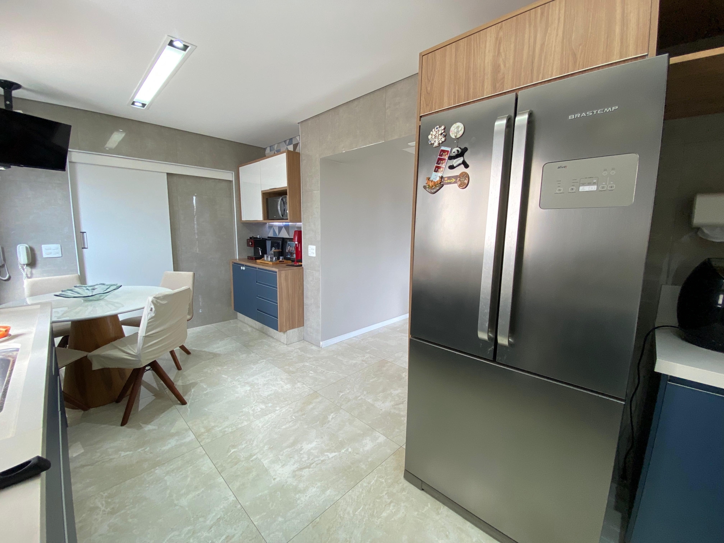 A cozinha é integrada e totalmente equipada com armários planejados, garantindo praticidade no dia a dia.