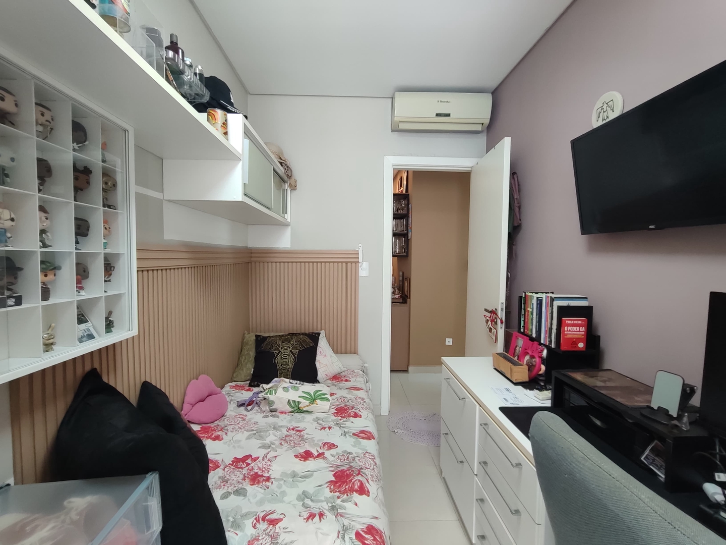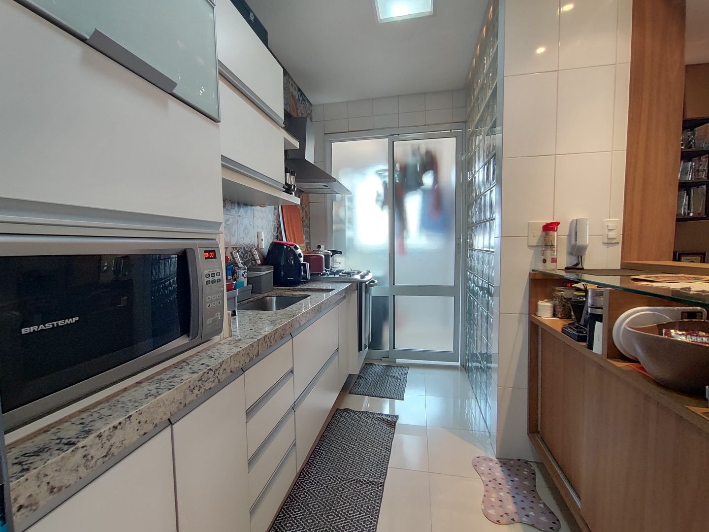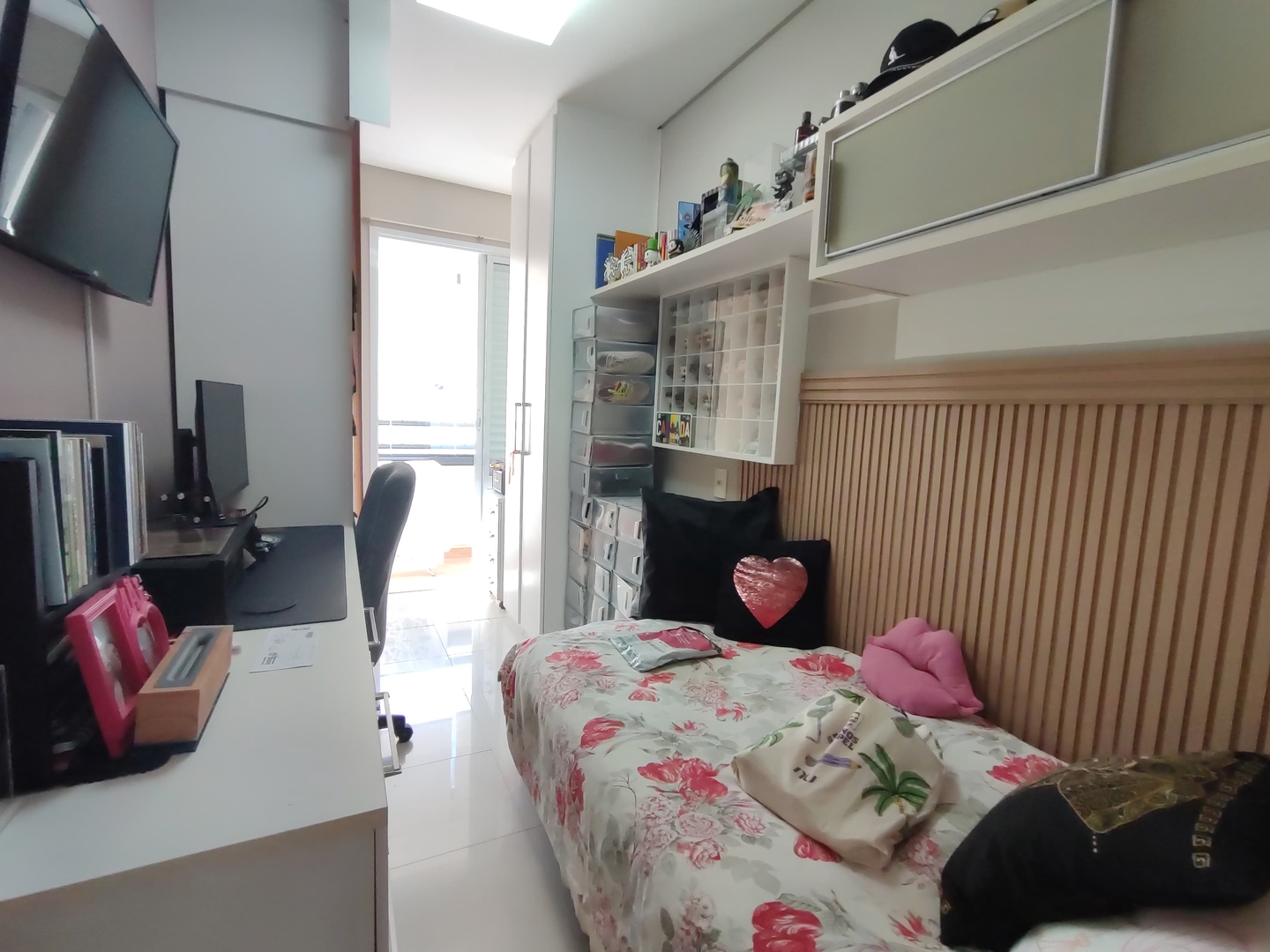 O apartamento conta com dependência completa, além de uma área social ampla e integrada à varanda com vista panorâmica. O piso em porcelanato dá um toque sofisticado e os dormitórios são confortáveis. A cozinha planejada e a área de serviço ventilada complementam esse ambiente funcional e aconchegante.
