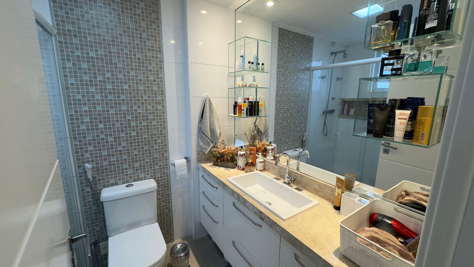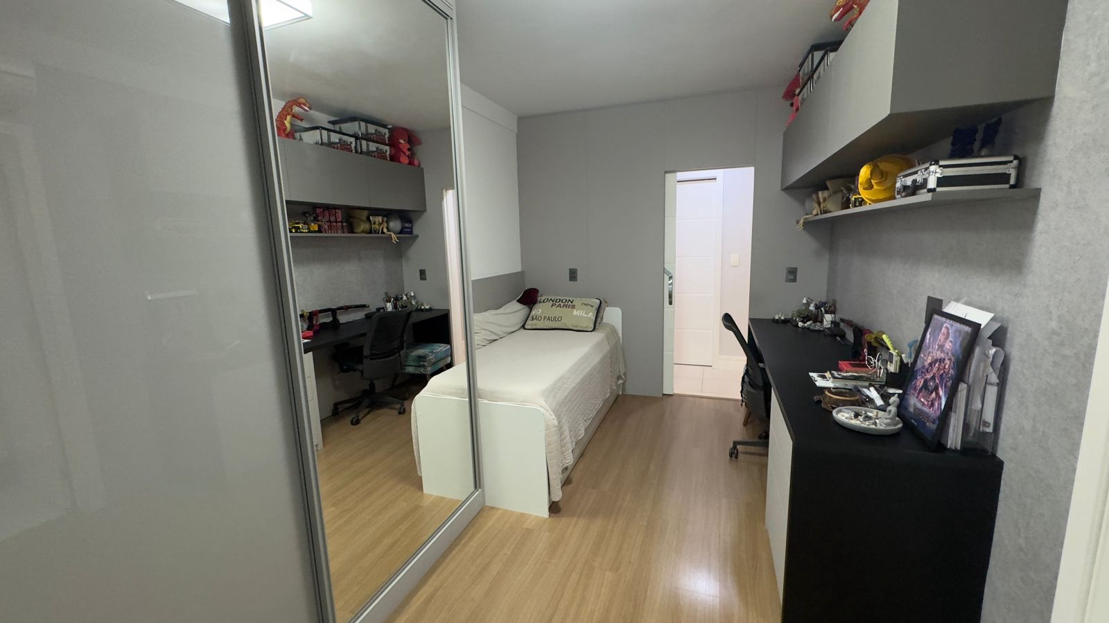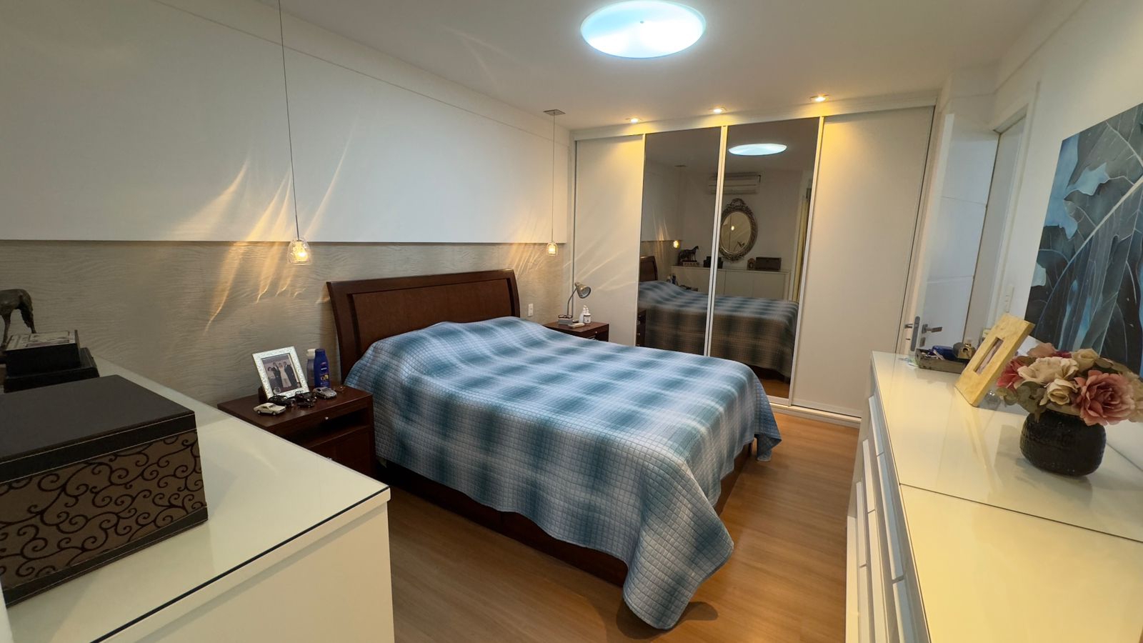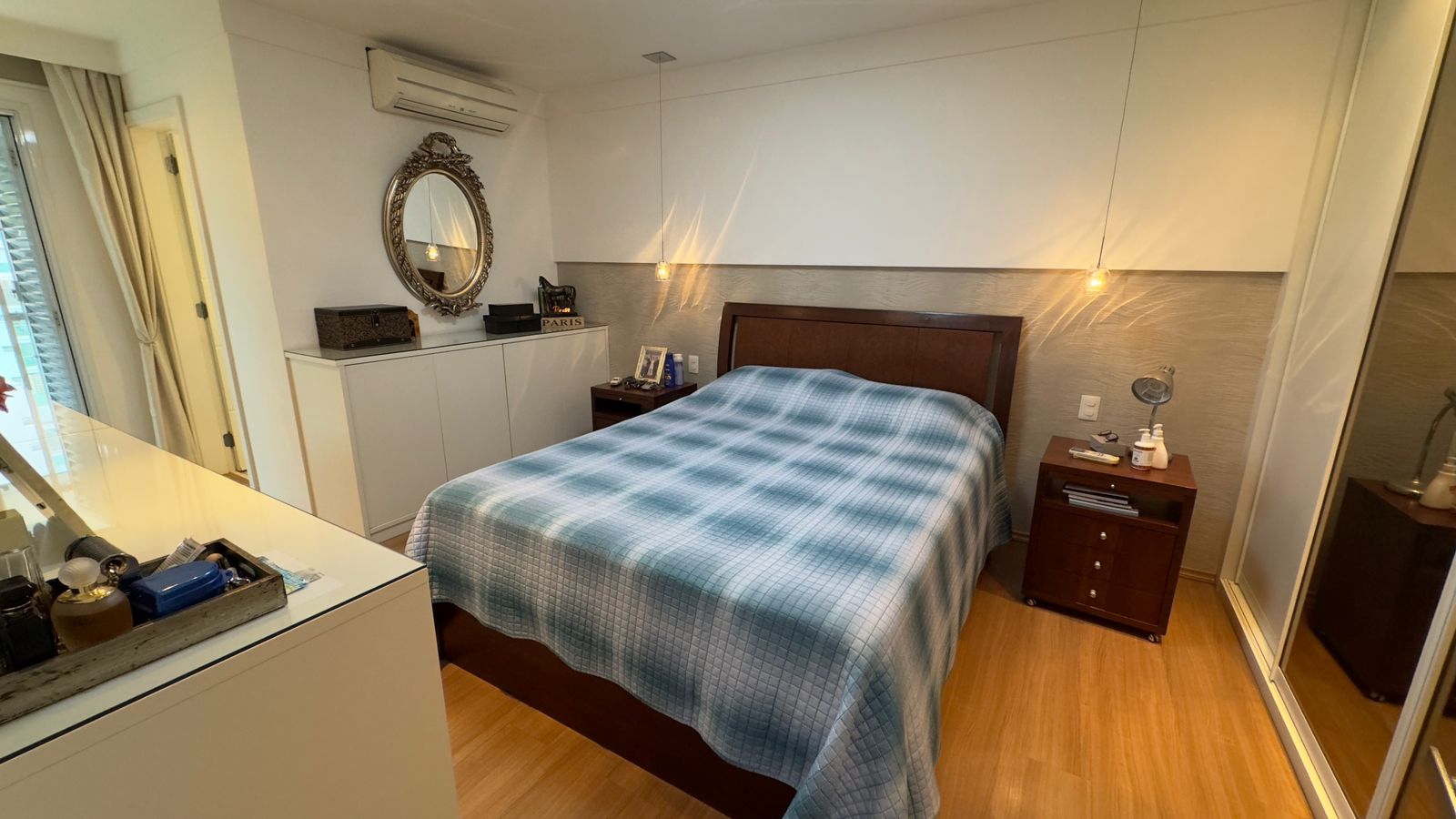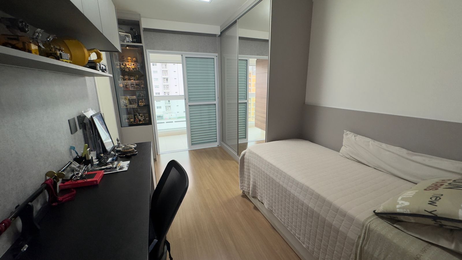 São 3 dormitórios sendo 3 suítes, com armários planejados nos quartos e banheiros