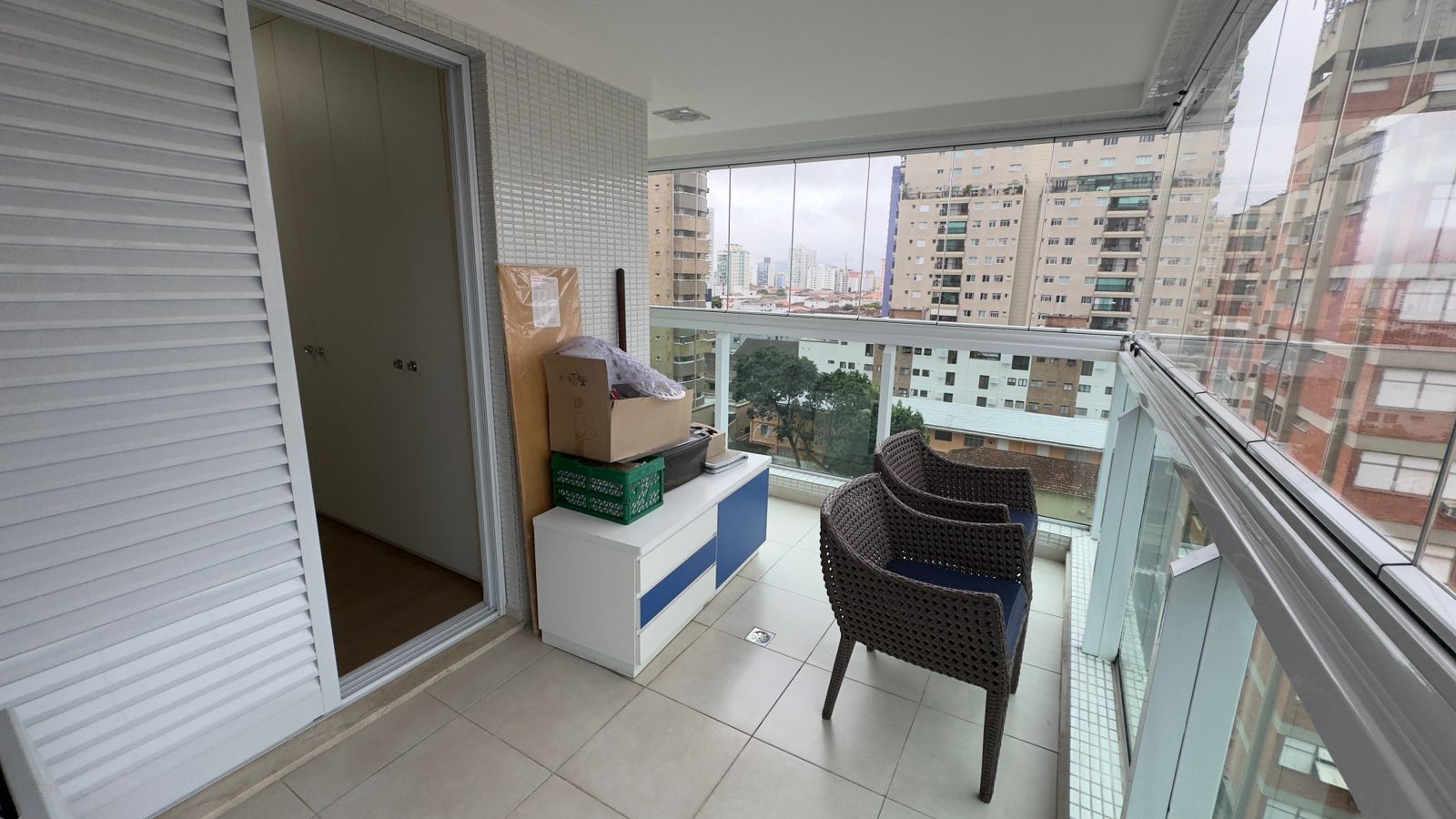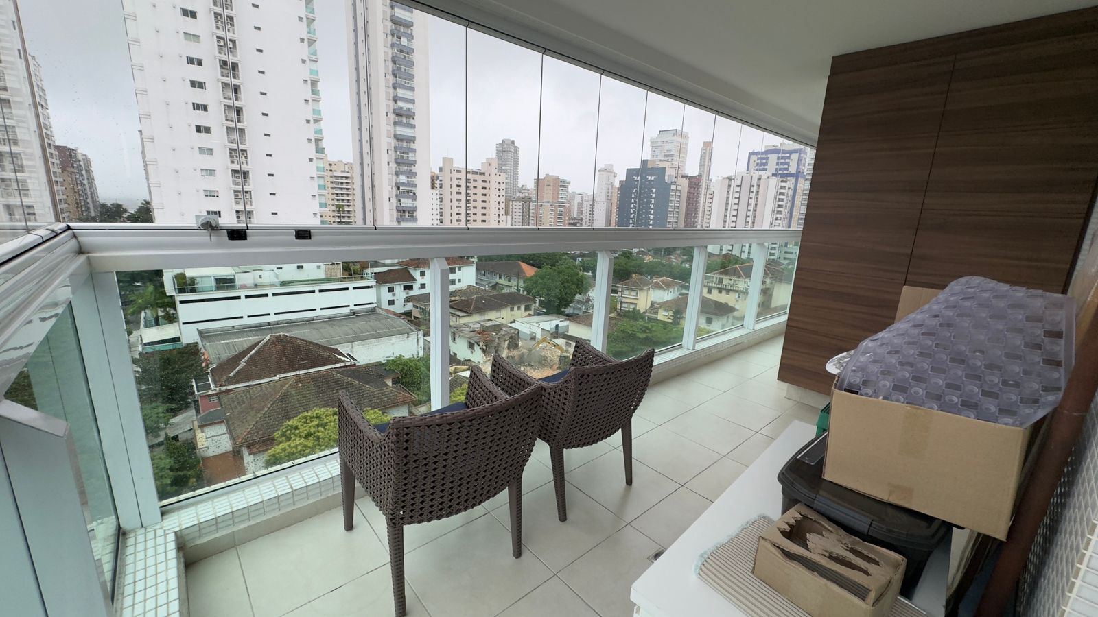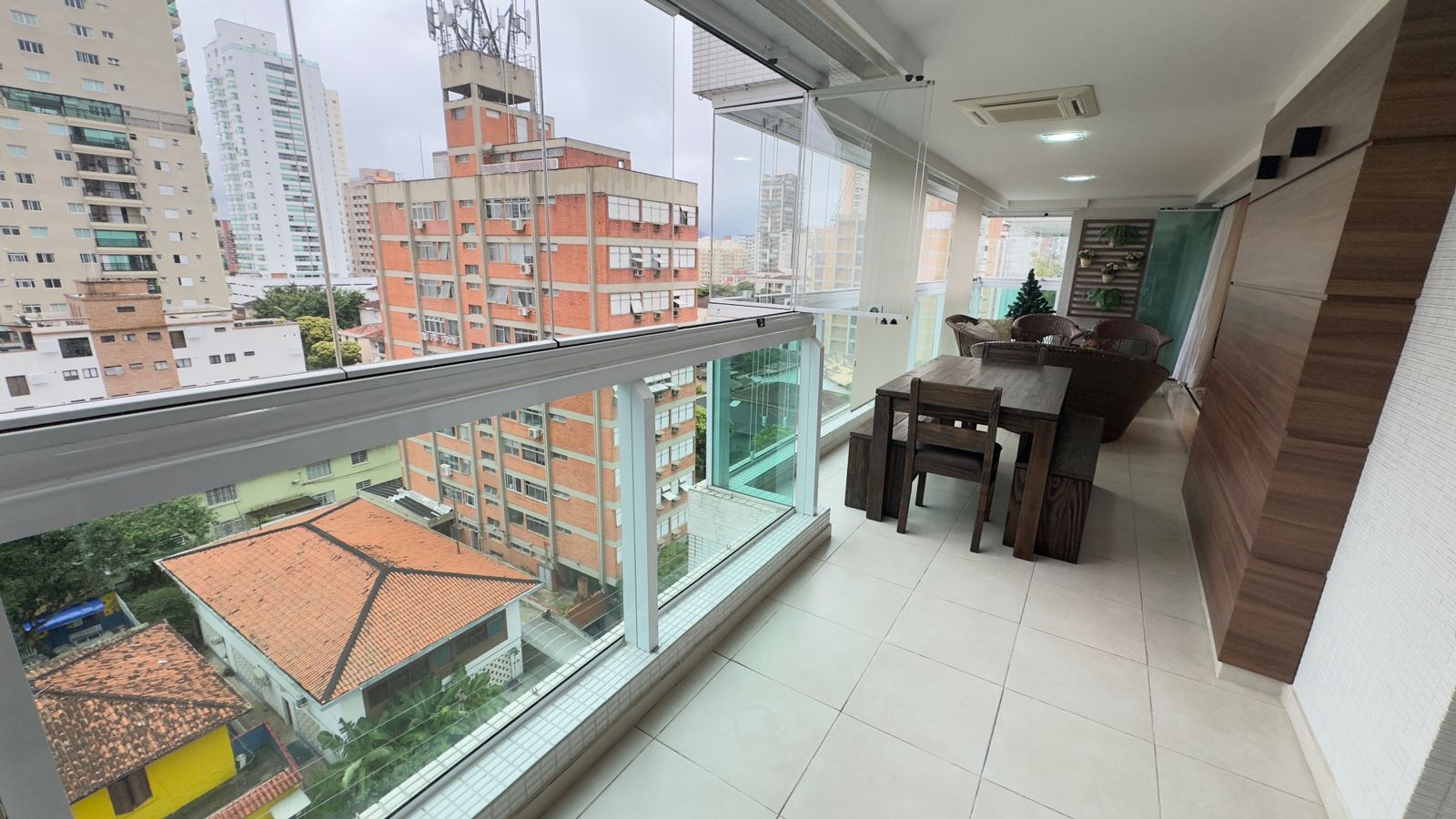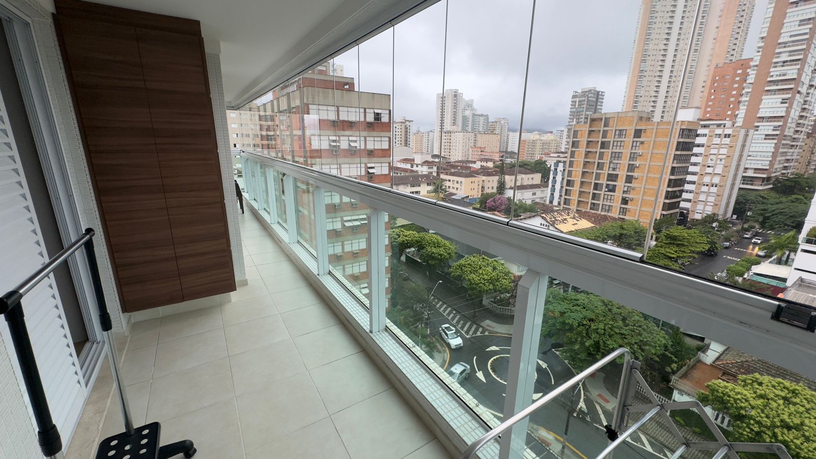 A varanda lateral integra os 3 dormitórios
