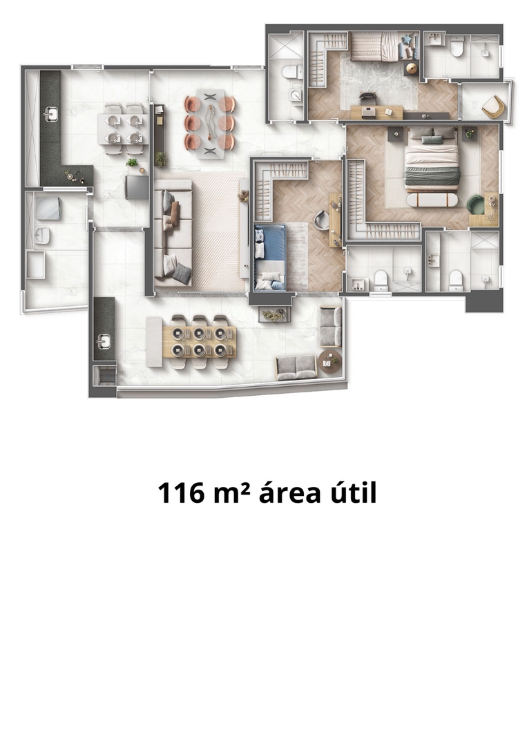 - *Apartamentos de 116m²* com 2 vagas de garagem