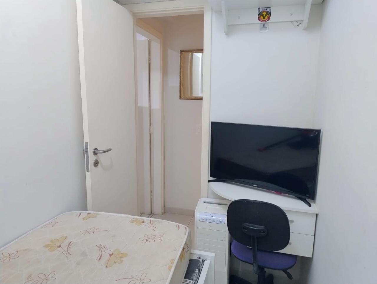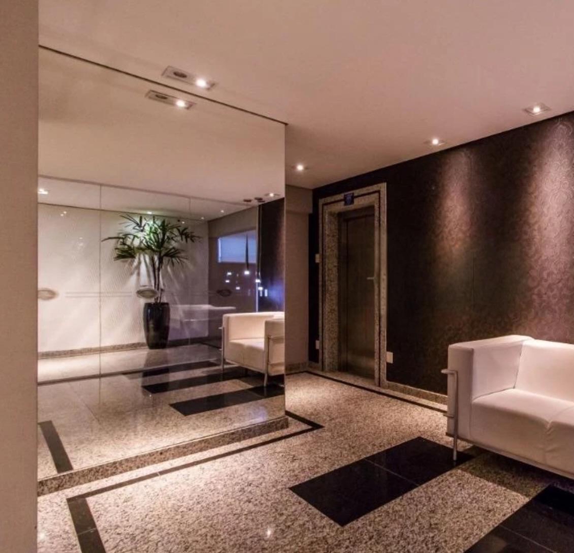 Este apartamento conta com 108m², 2 suítes (uma com closet), lavabo, varanda gourmet com churrasqueira e cortina de vidro, além de um escritório convertido em terceiro quarto. Ar-condicionado split na sala e suítes, armários planejados em todos os ambientes, área técnica e 1 vaga de garagem demarcada ao lado dos elevadores.