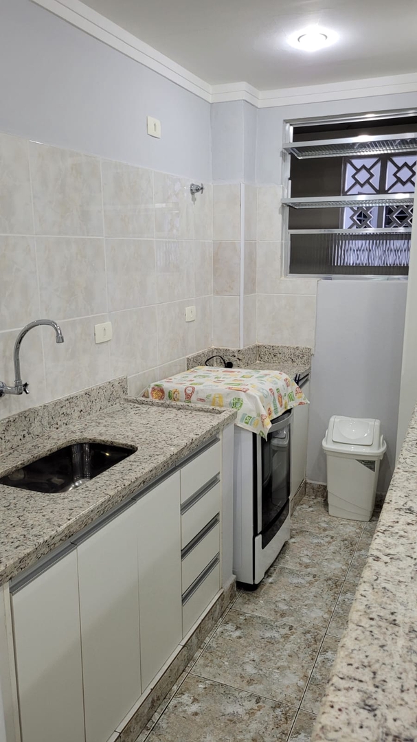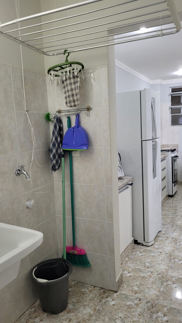 O apartamento está localizado no bairro da Pompéia, a poucos minutos da praia, com fácil acesso a mercados, padarias e outros comércios locais, oferecendo uma excelente qualidade de vida.