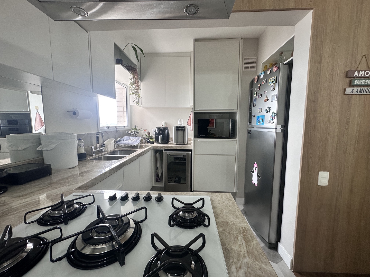 Apartamento com 3 dormitórios, 2 salas, cozinha americana, 3 banheiros, sendo, 1 suíte, 1 banheiro social e 1 lavabo, com área de serviço bem elaborada