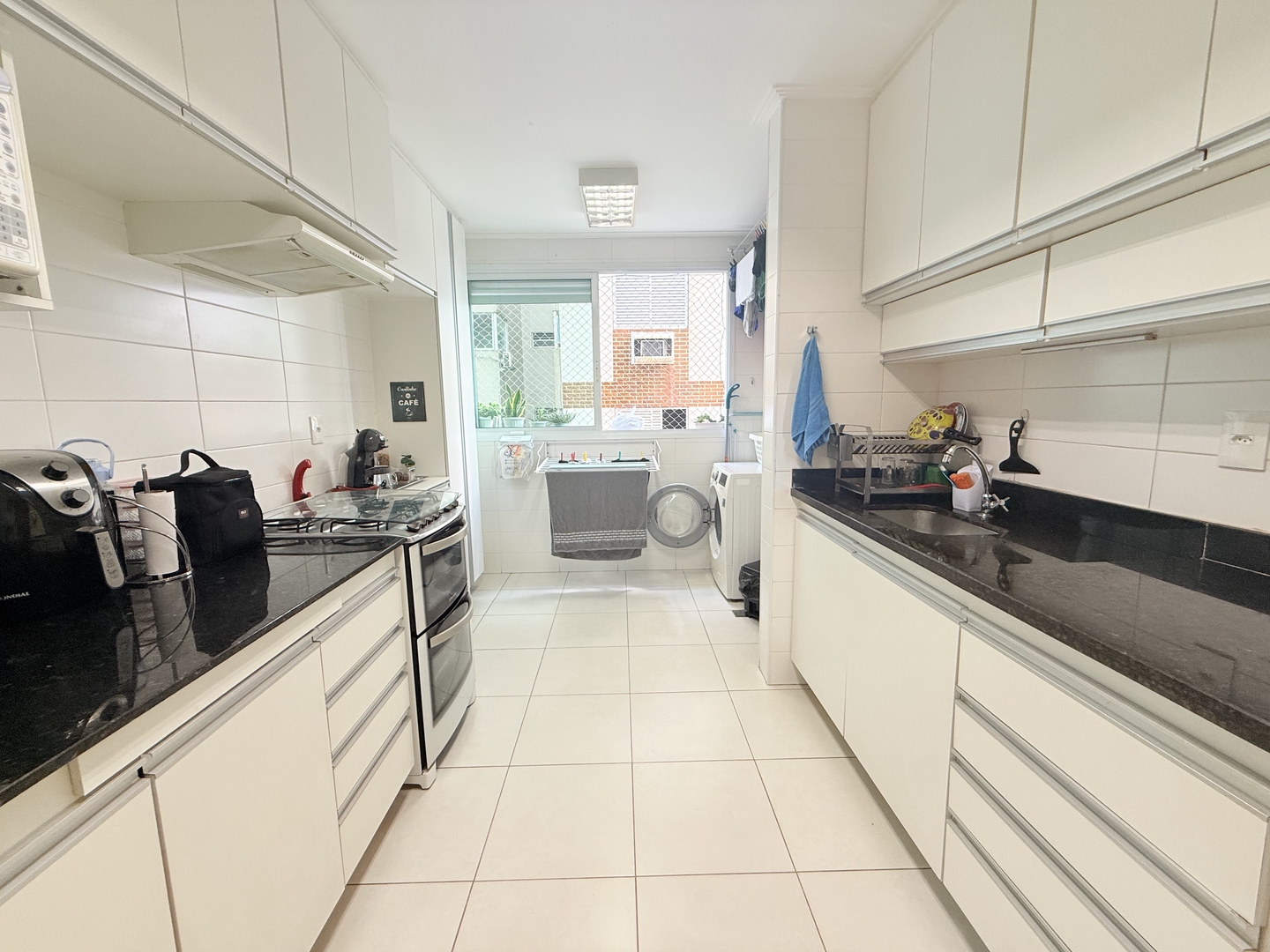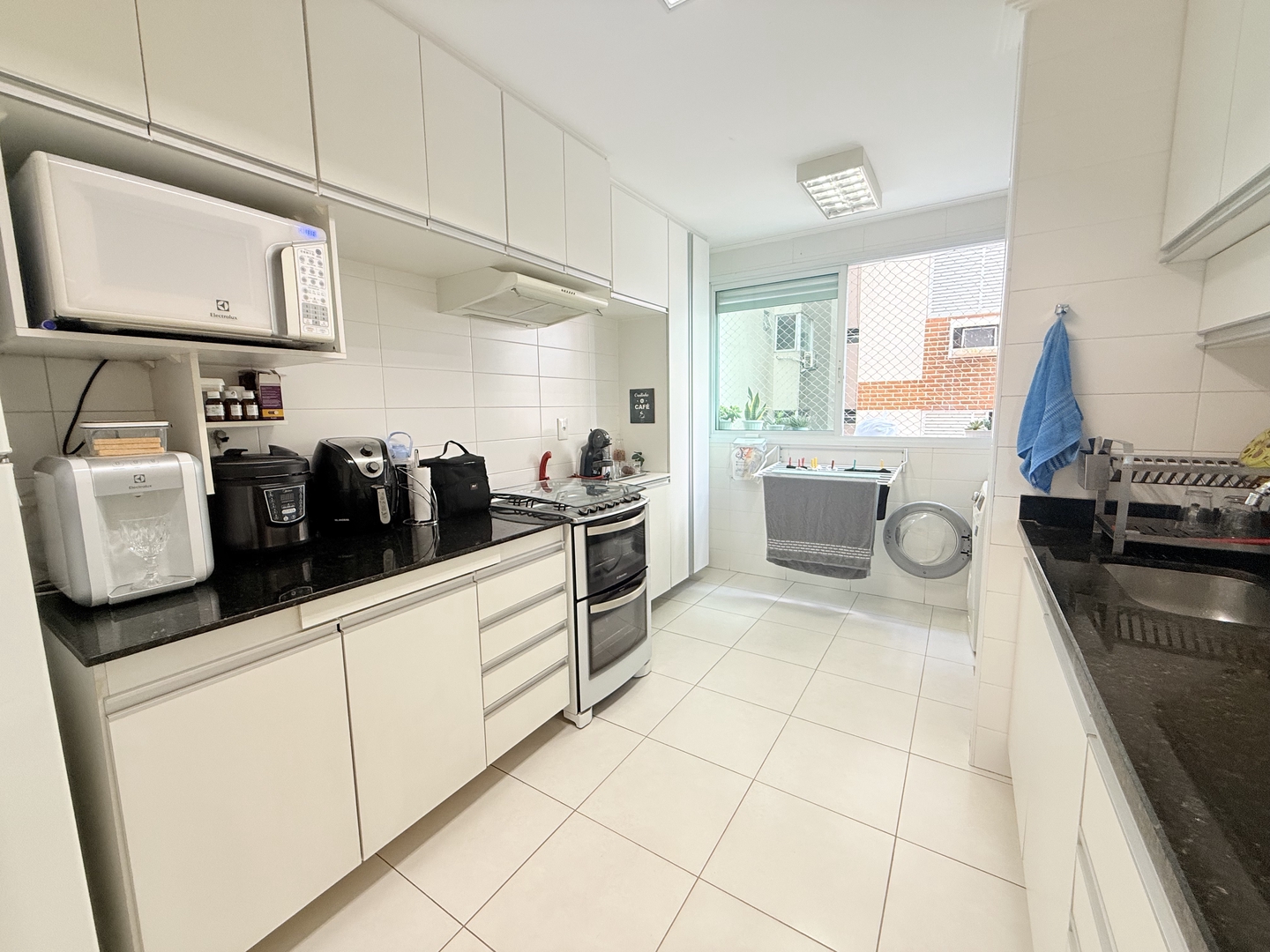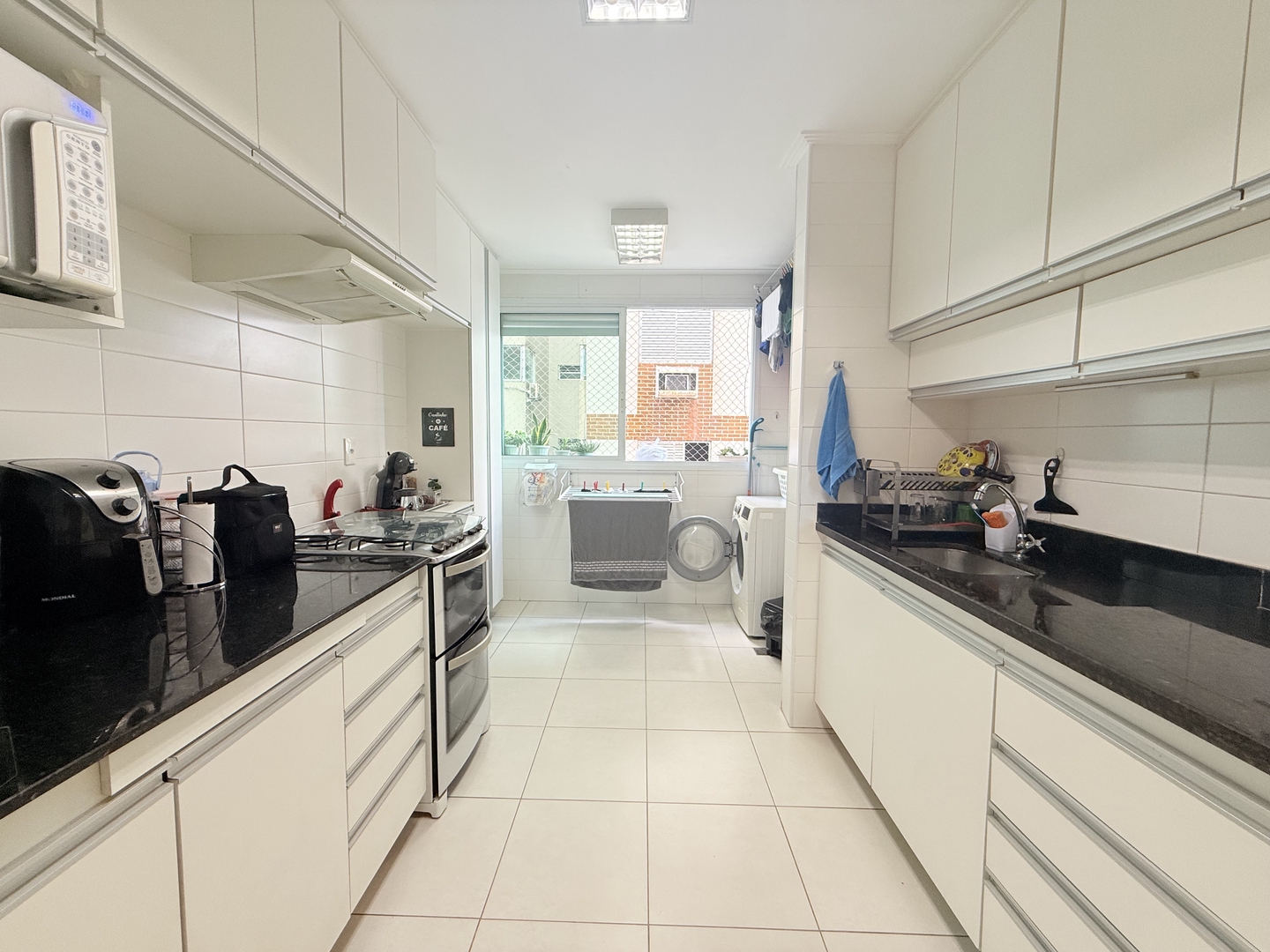 Com 100m² de área útil, o imóvel conta com móveis planejados de alto padrão em todos os cômodos, incluindo dormitórios, sala, cozinha e banheiros. O piso em porcelanato e a iluminação natural em abundância tornam os ambientes ainda mais agradáveis e sofisticados