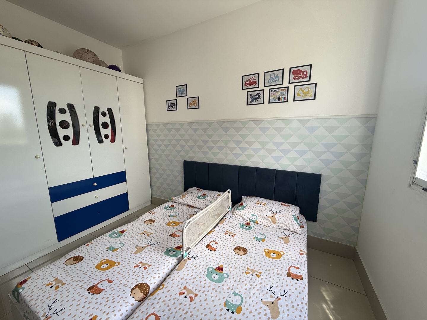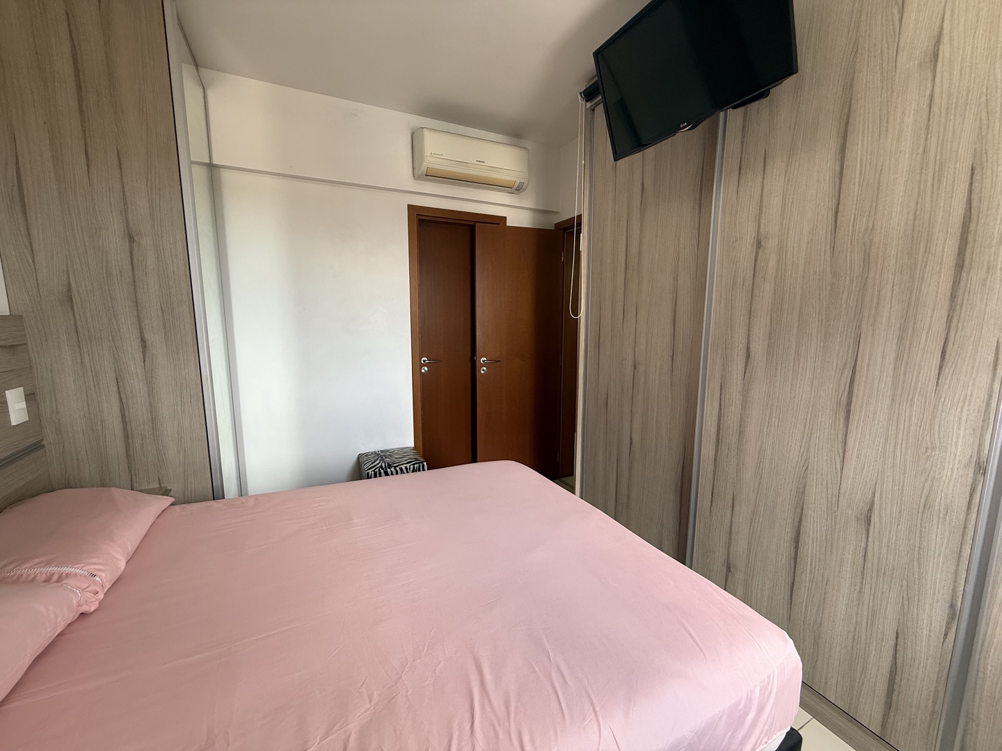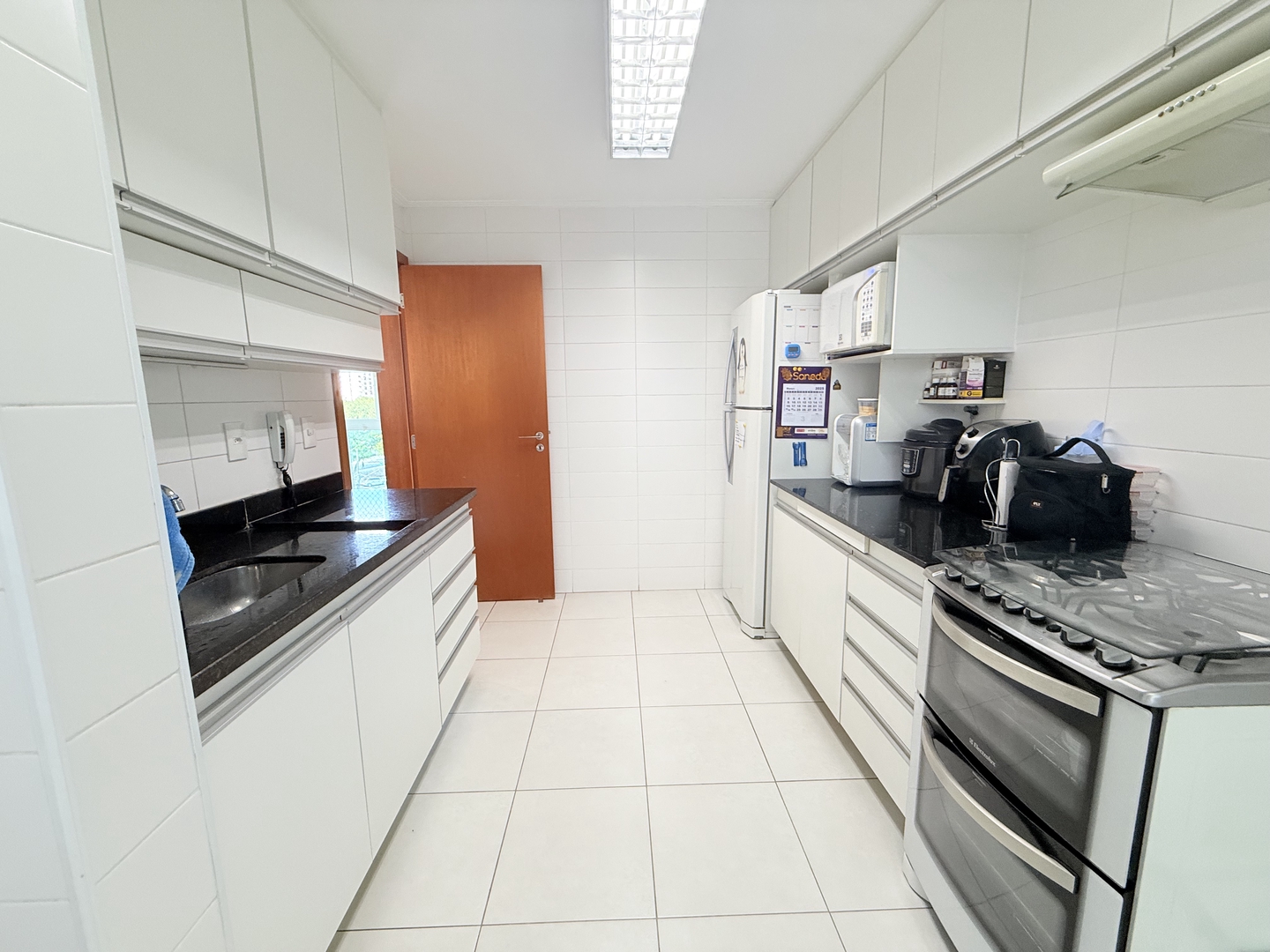 Com 100m² de área útil, o imóvel conta com móveis planejados de alto padrão em todos os cômodos, incluindo dormitórios, sala, cozinha e banheiros. O piso em porcelanato e a iluminação natural em abundância tornam os ambientes ainda mais agradáveis e sofisticados