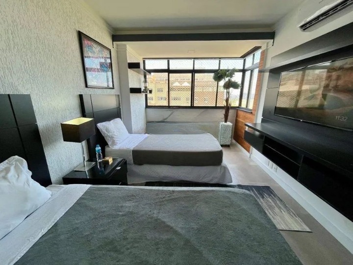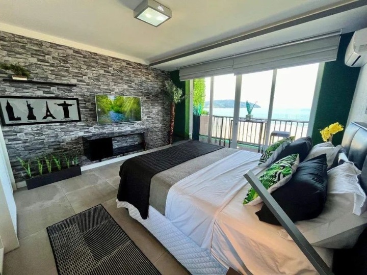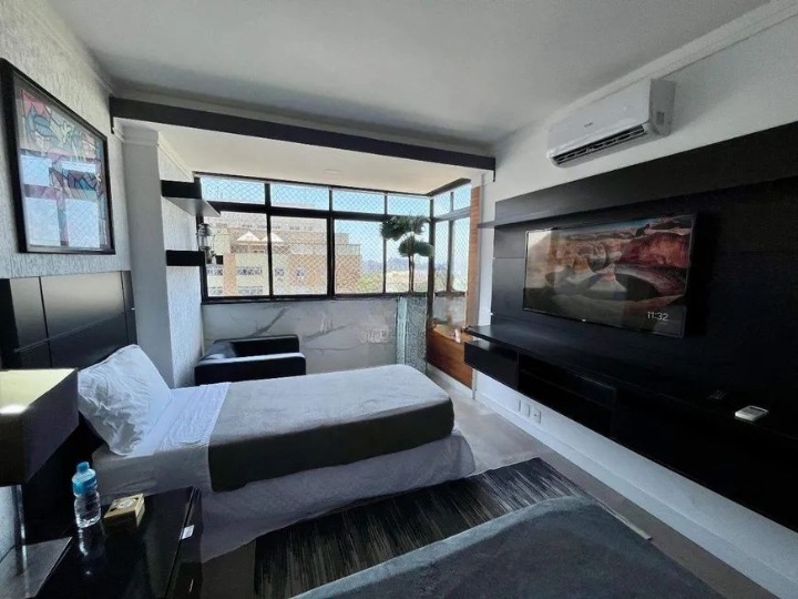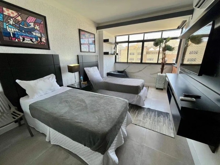 Prédio frente mar, apartamento andar alto, todo reformado, com cortinas automatizadas, decoração da mais alta qualidade.