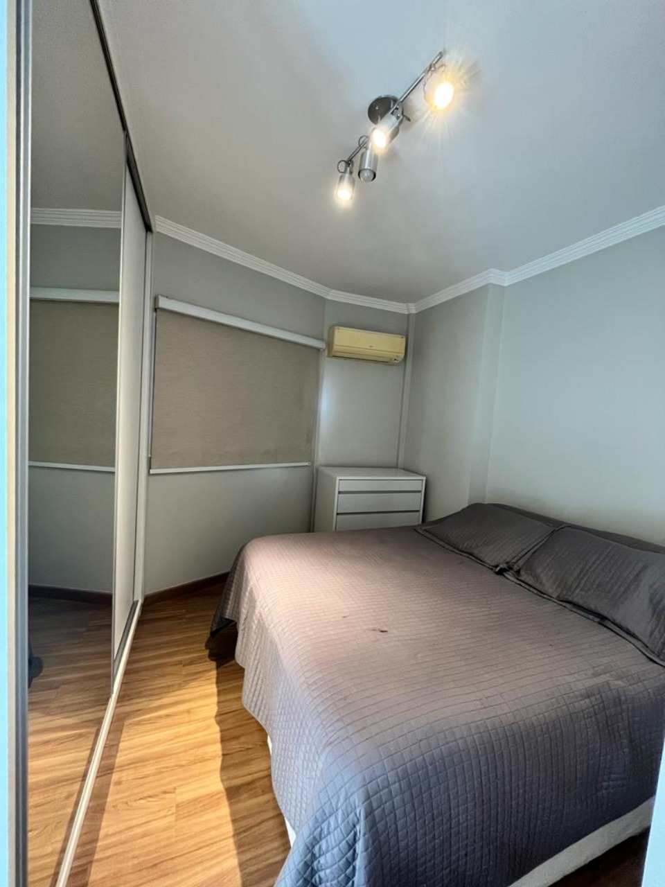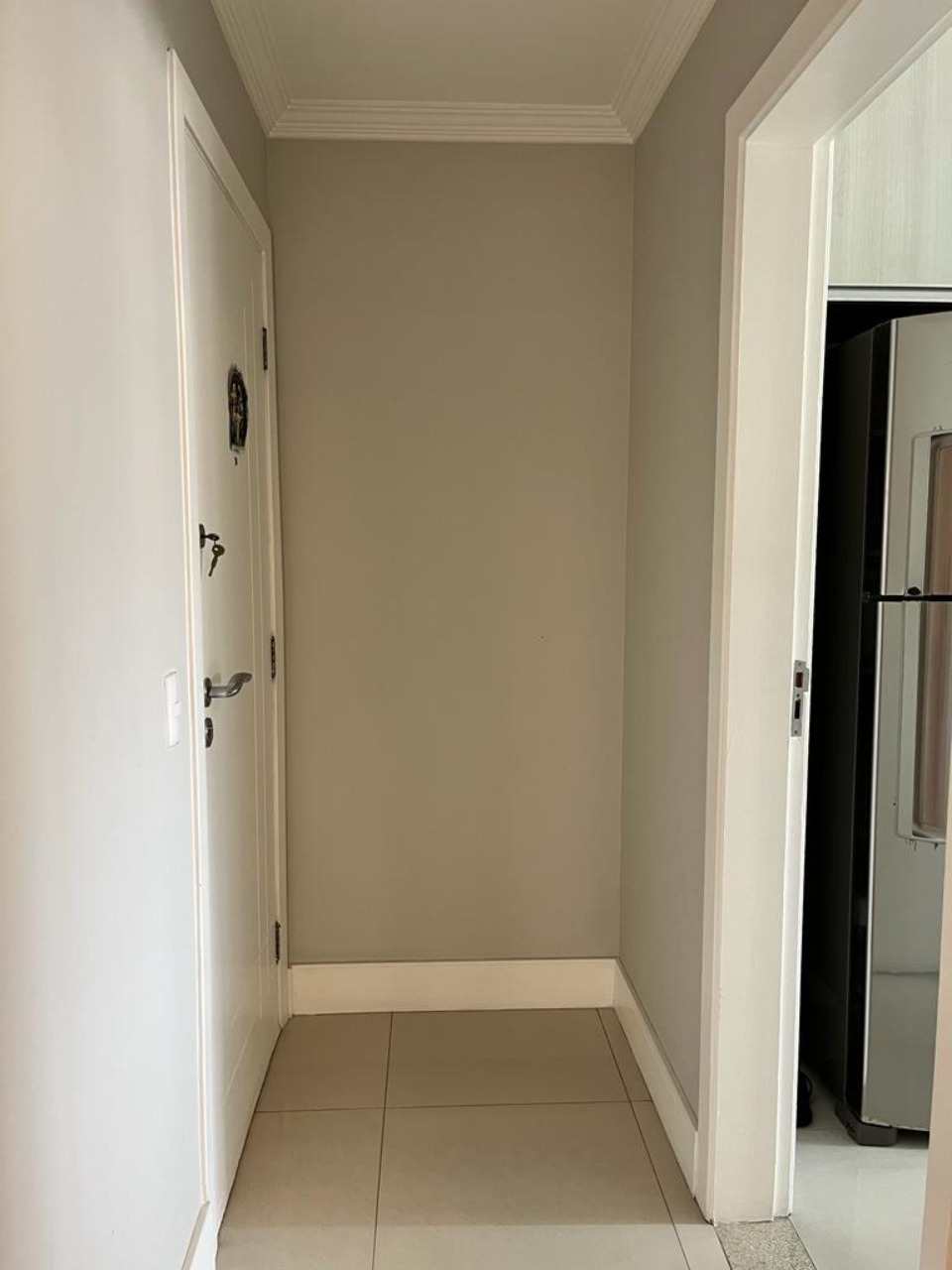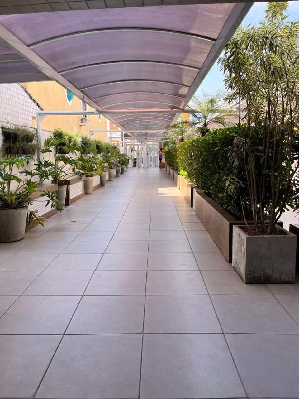 O apartamento em si conta com dois dormitórios espaçosos, tratados com o mesmo cuidado que a ampla varanda, garantindo uma distribuição inteligente dos espaços. A garagem demarcada, com espaço para dois carros, é um conforto adicional.