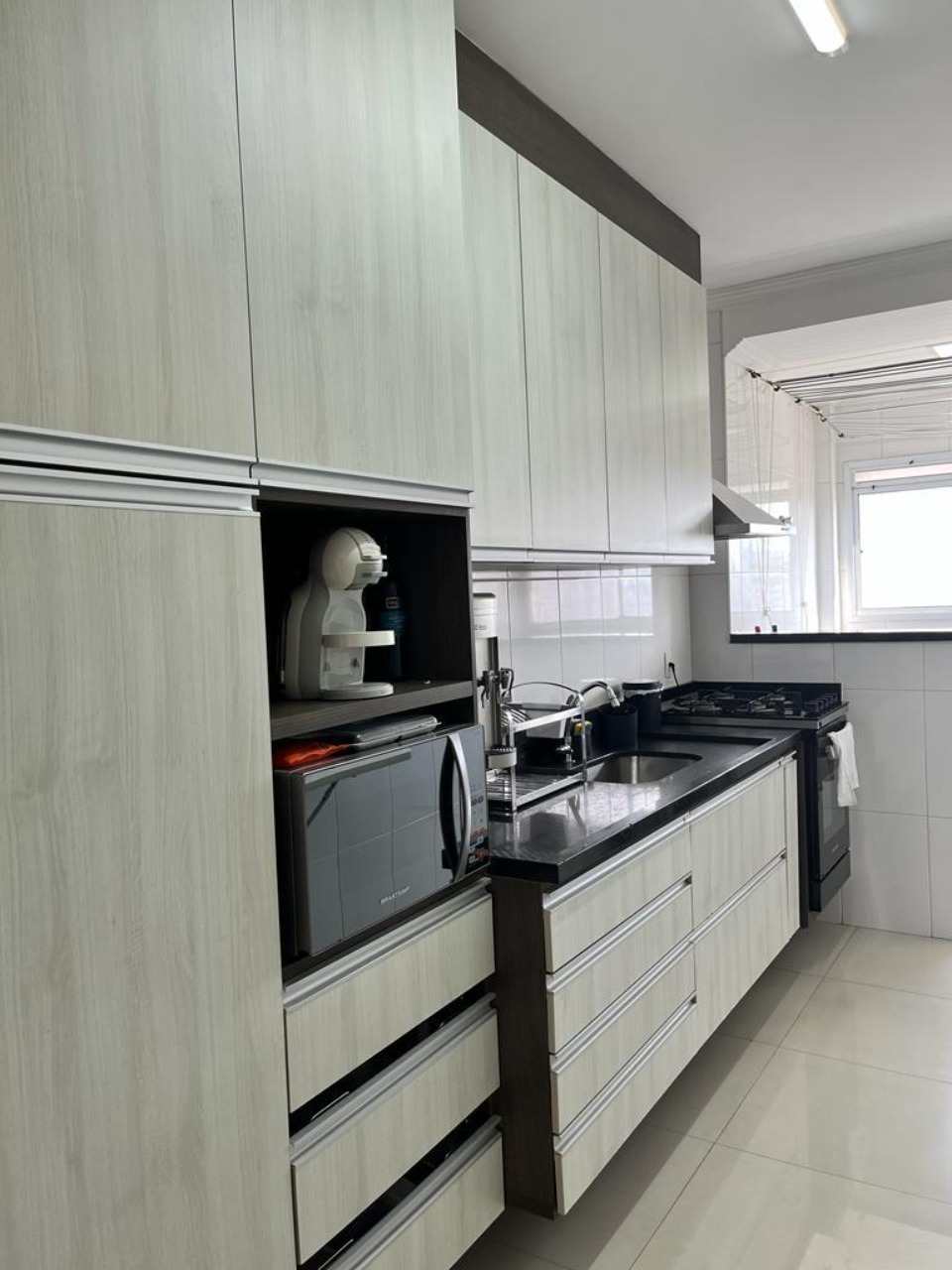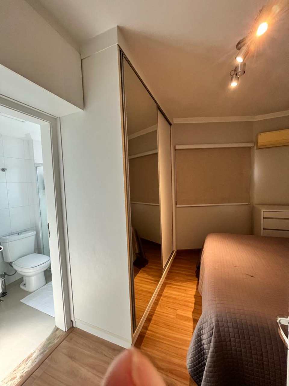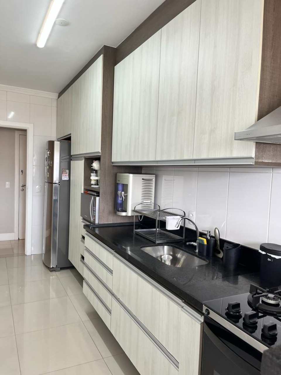 O apartamento em si conta com dois dormitórios espaçosos, tratados com o mesmo cuidado que a ampla varanda, garantindo uma distribuição inteligente dos espaços. A garagem demarcada, com espaço para dois carros, é um conforto adicional.