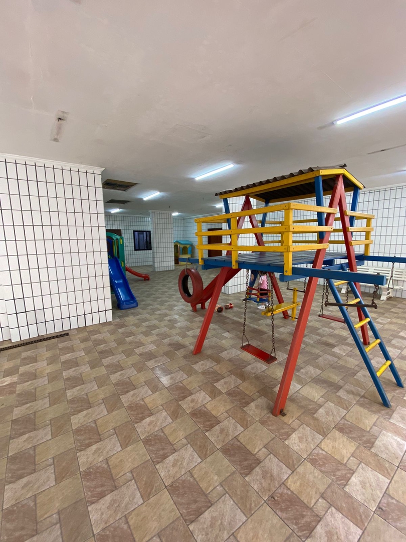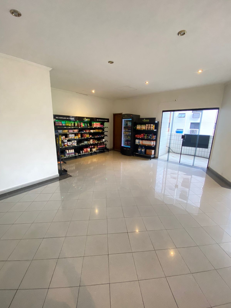 Mezanino com mercadinho, academia, salão de festas e playground.