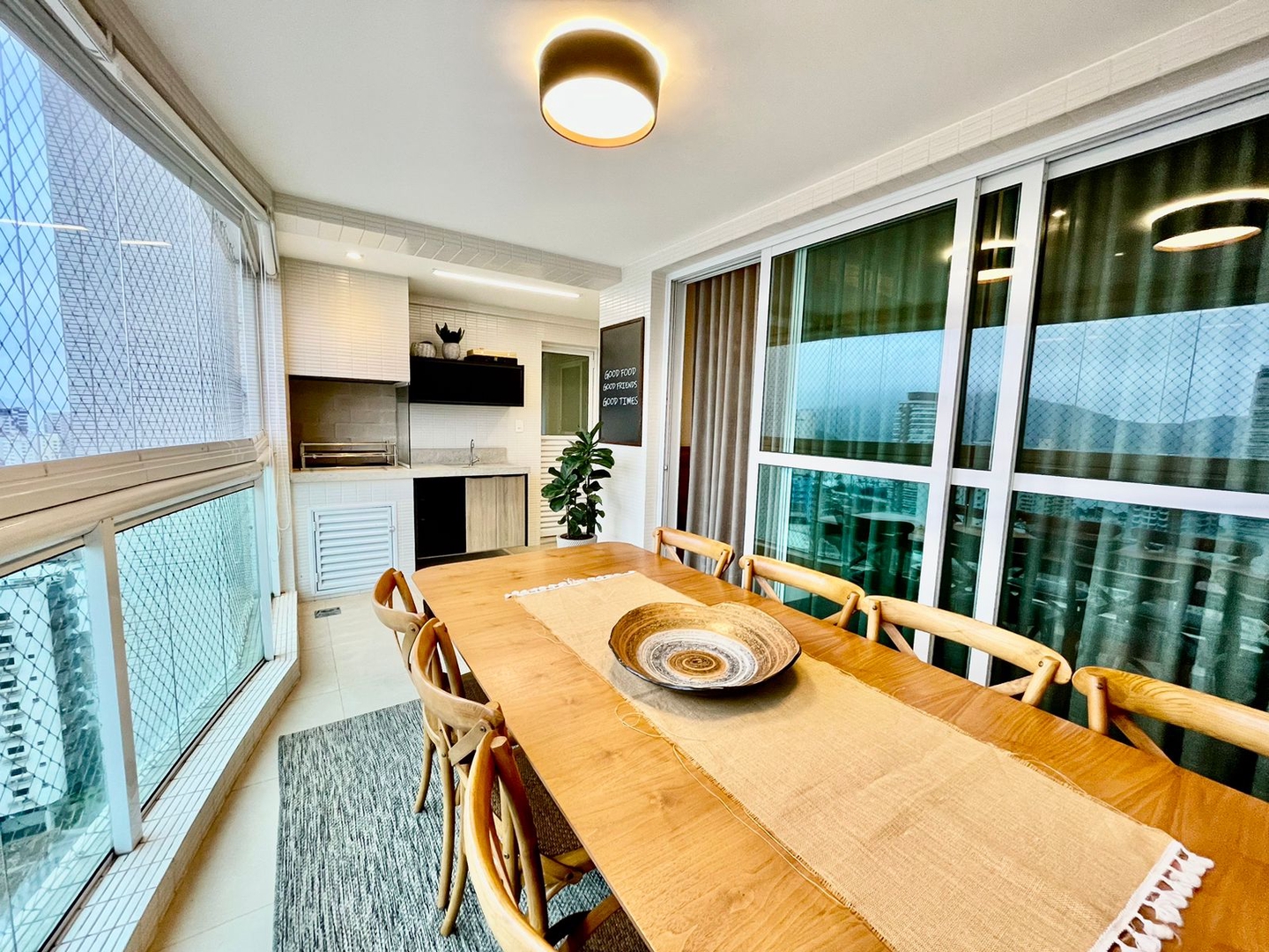 Um dos mais desejados na Região, só entrar e morar, são 135m² úteis, moderno, com acabamentos de primeira, todo climatizado. Sala 02 ambientes muito iluminada, piso porcelanato, lavabo, varanda integrada com churrasqueira, com fechamento em vidro e vista livre.