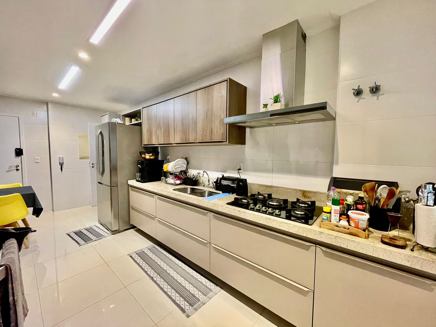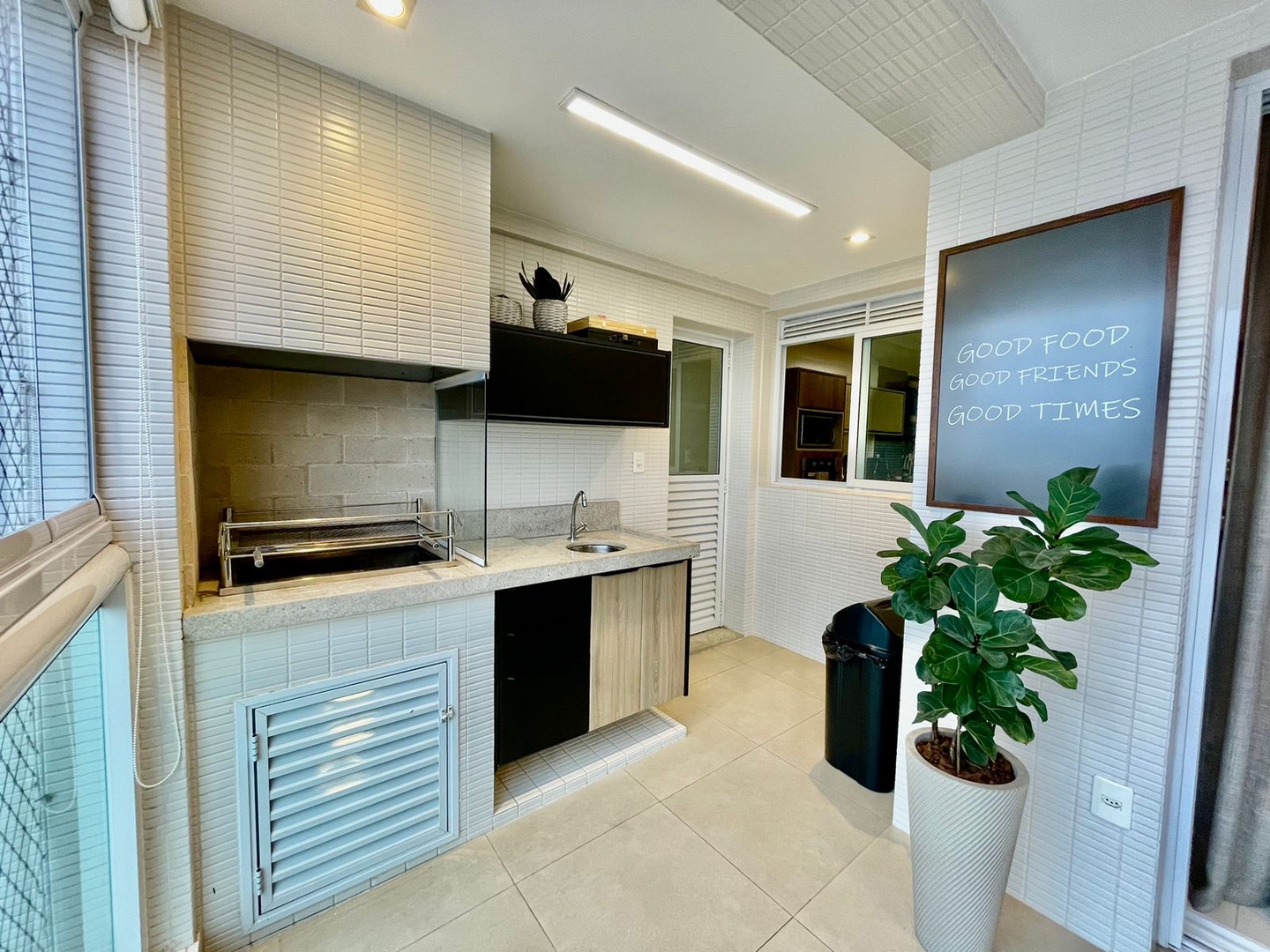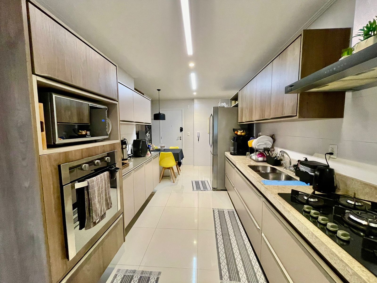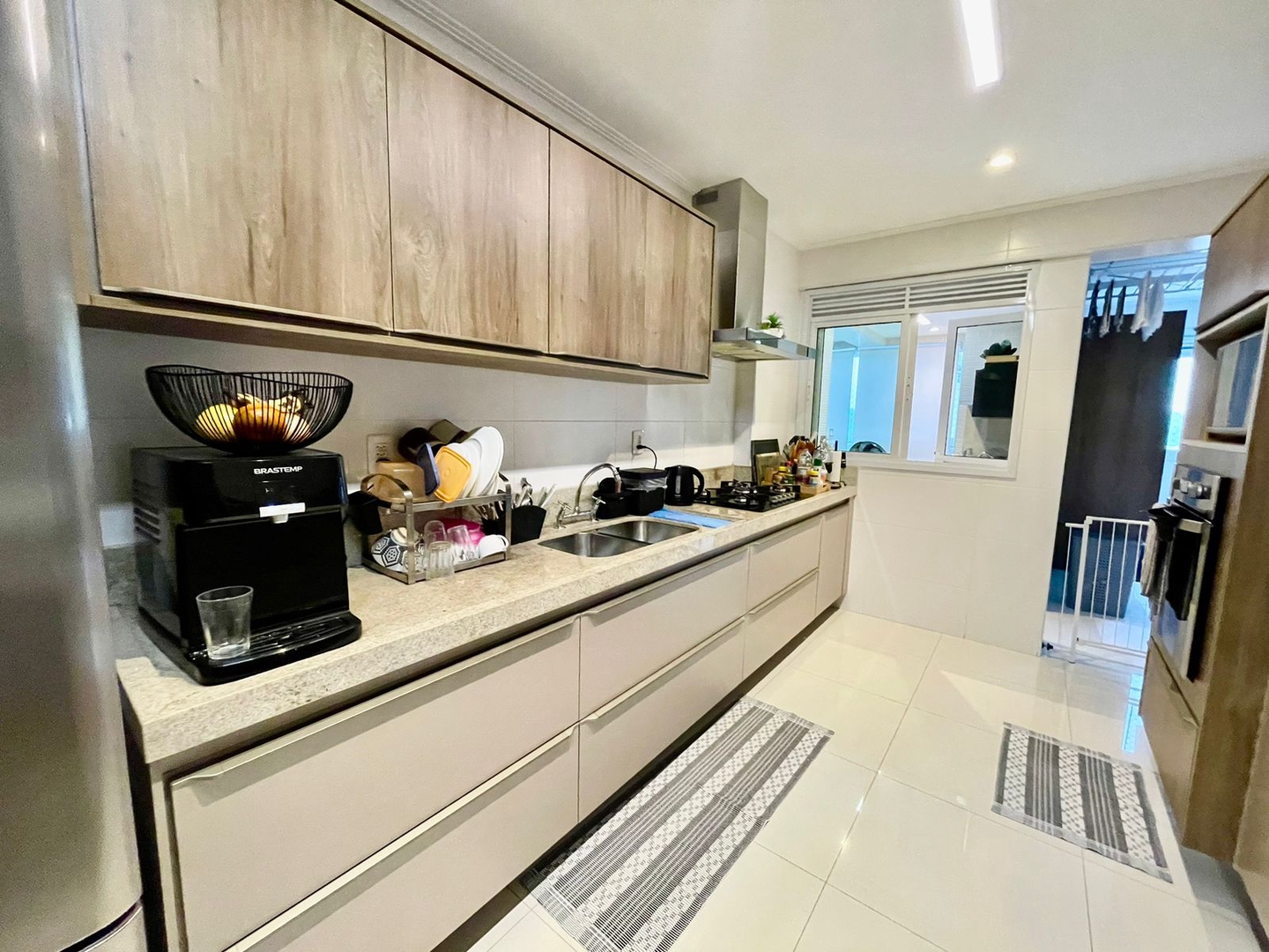 Cozinha toda equipada com eletrodomésticos e planejados, dependência e WC de serviço.