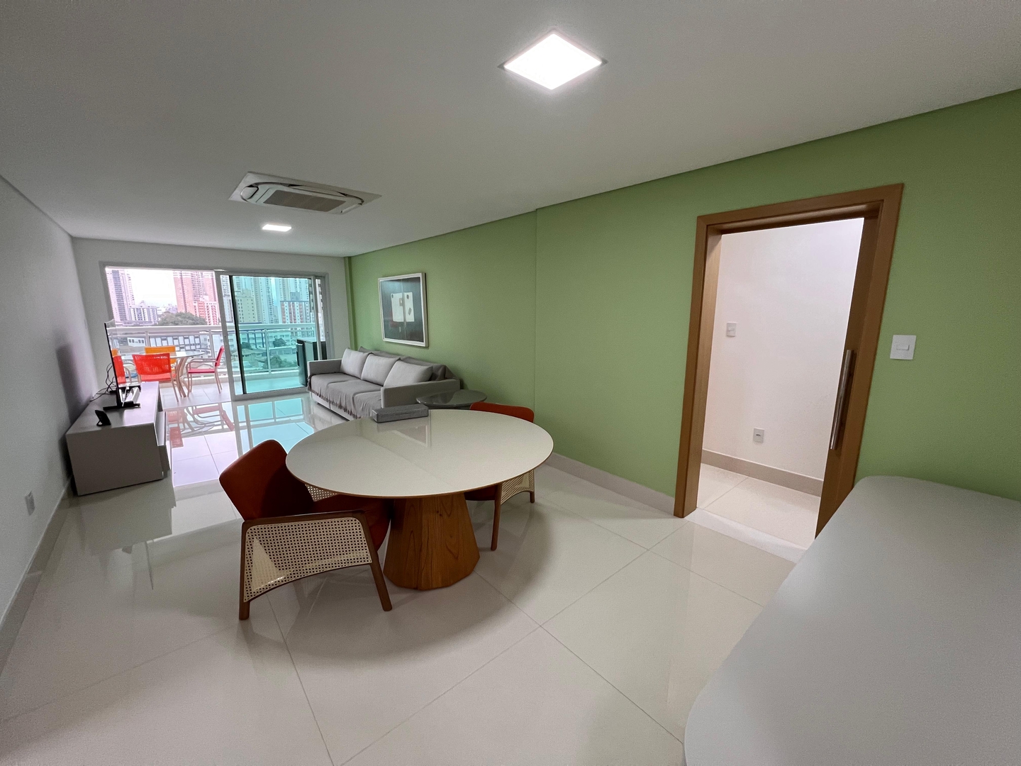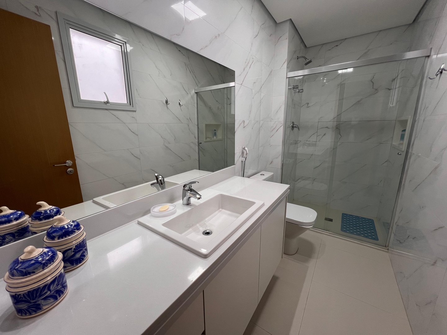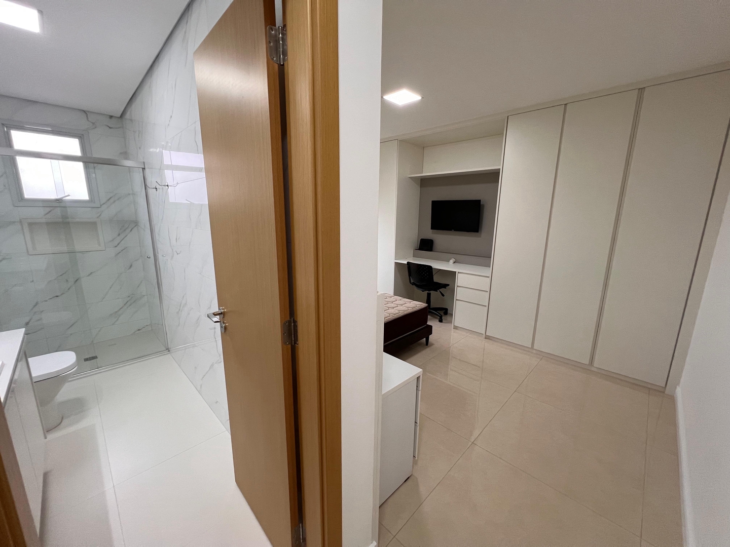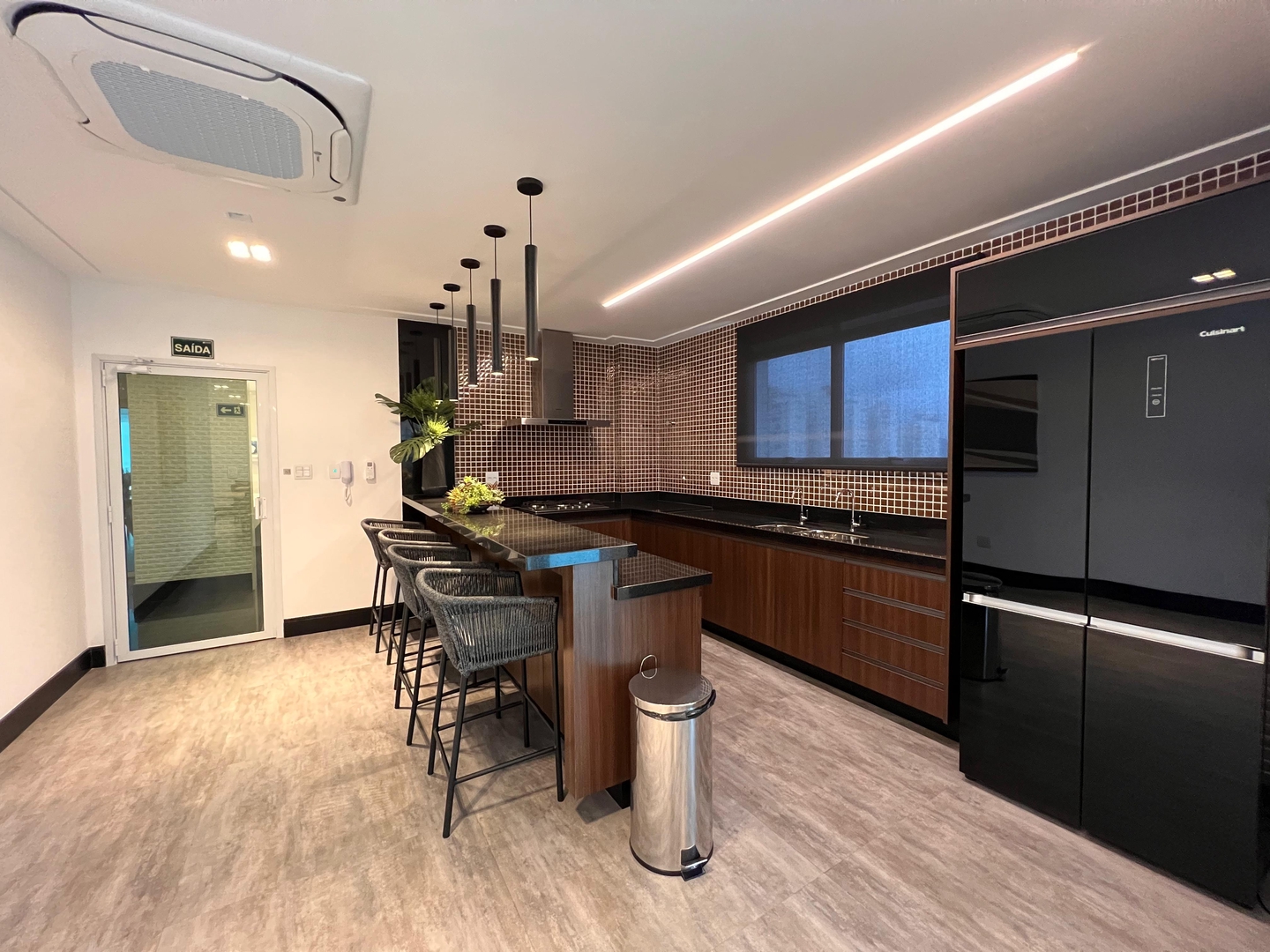 Ampla sala para dois ambientes com varanda gourmet e lavabo, cozinha independente com acesso para varanda, churrasqueira a gás com pedras vulcânicas, 3 suítes com persianas elétricas, sendo que a máster com closet e acesso para varanda, dependência completa, área técnica, entrada social e de serviço, 2 vagas de garagem demarcadas, estrutura completa para ar condicionado.