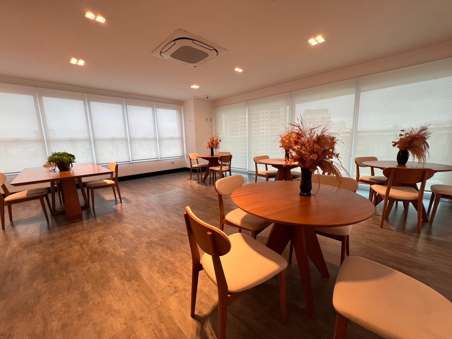 Detalhes do condomínio; 2 Aptos por andar, Pré-instalação para A/C Mini VRF quente e frio, Lavabo, Esquadrias de alumínio c/ pintura eletrostática branca, instalação para aquecedor de água à gás com recirculação, Lavatórios dos banheiros em MARMO STONE BRANCO PRIME, Terraço gourmet com churrasqueira à gas, Dormitórios com janelas automatizadas, Bancadas de cozinha em granito preto São Gabriel,- Cubas Inox Mekal, Louças e metais DECA padrão luxo,- Vaga demarcada, 2 bases para carregar carro elétrico.