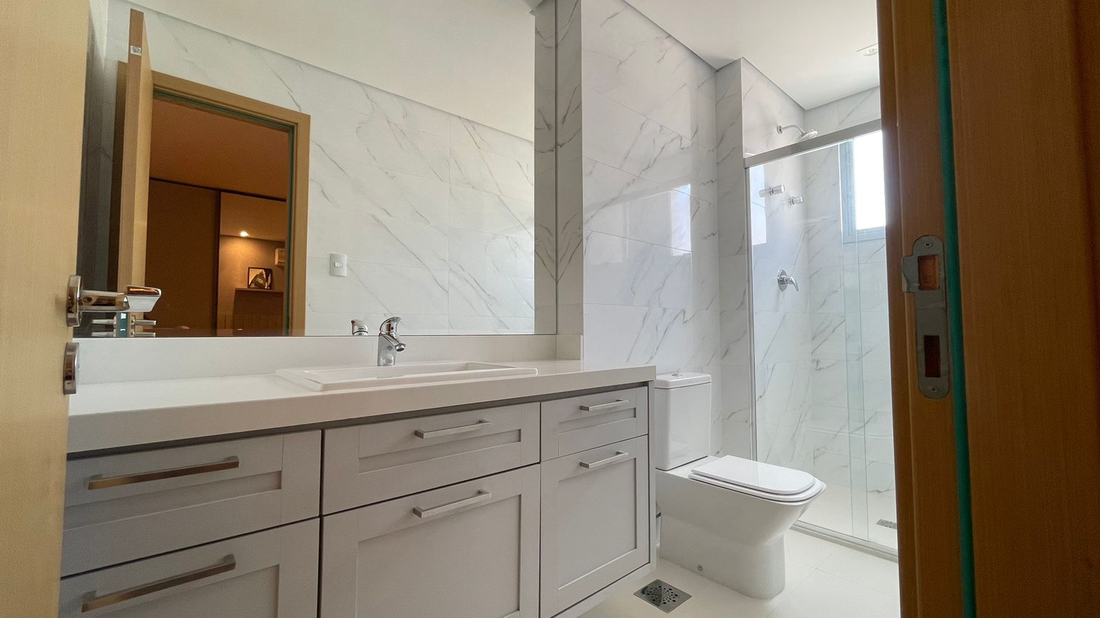 Detalhes do condomínio; 2 Aptos por andar, Pré-instalação para A/C Mini VRF quente e frio, Lavabo, Esquadrias de alumínio c/ pintura eletrostática branca, instalação para aquecedor de água à gás com recirculação, Lavatórios dos banheiros em MARMO STONE BRANCO PRIME, Terraço gourmet com churrasqueira à gas, Dormitórios com janelas automatizadas, Bancadas de cozinha em granito preto São Gabriel,- Cubas Inox Mekal, Louças e metais DECA padrão luxo,- Vaga demarcada, 2 bases para carregar carro elétrico.