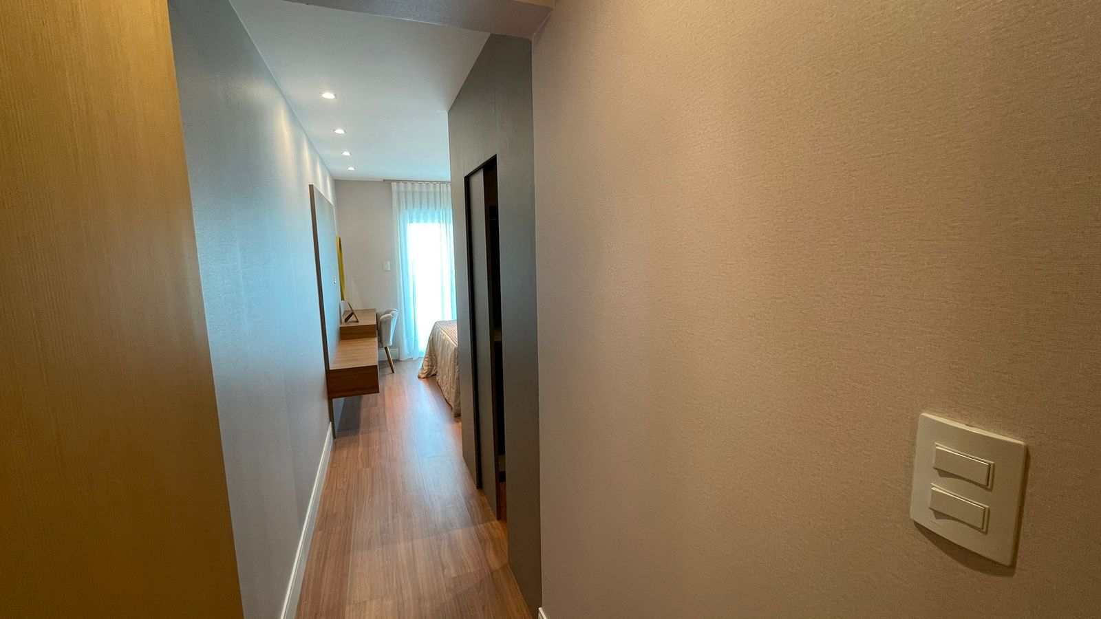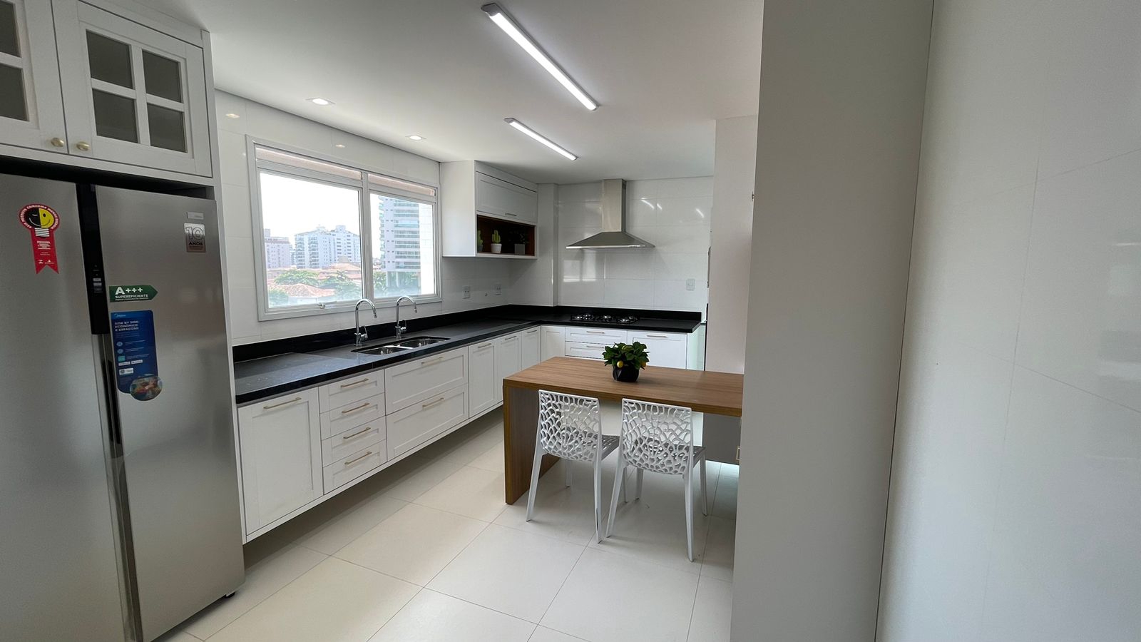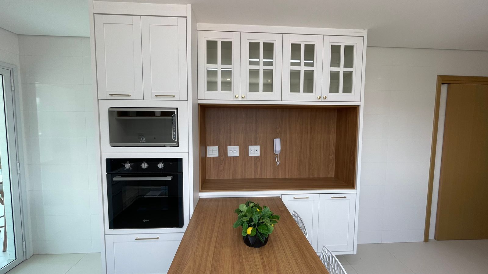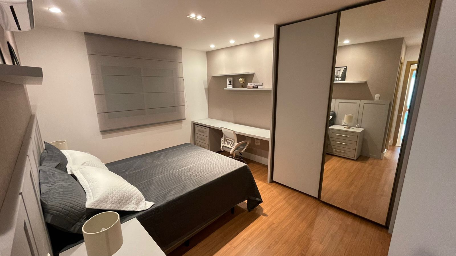 Ampla sala para dois ambientes com varanda gourmet e lavabo, cozinha independente com acesso para varanda, churrasqueira a gás com pedras vulcânicas, 3 suítes com persianas elétricas, sendo que a máster com closet e acesso para varanda, dependência completa, área técnica, entrada social e de serviço, 2 vagas de garagem demarcadas, estrutura completa para ar condicionado.