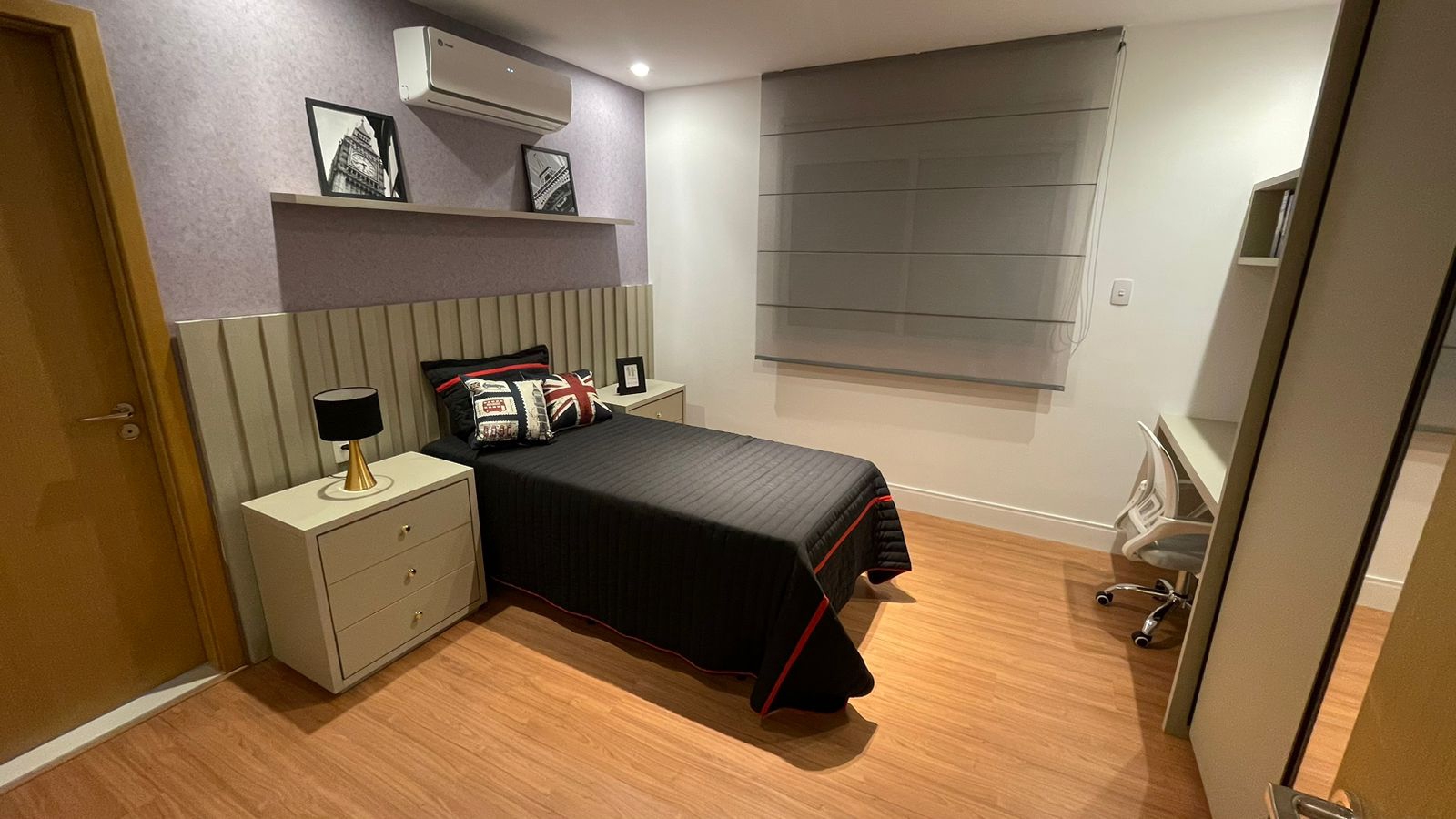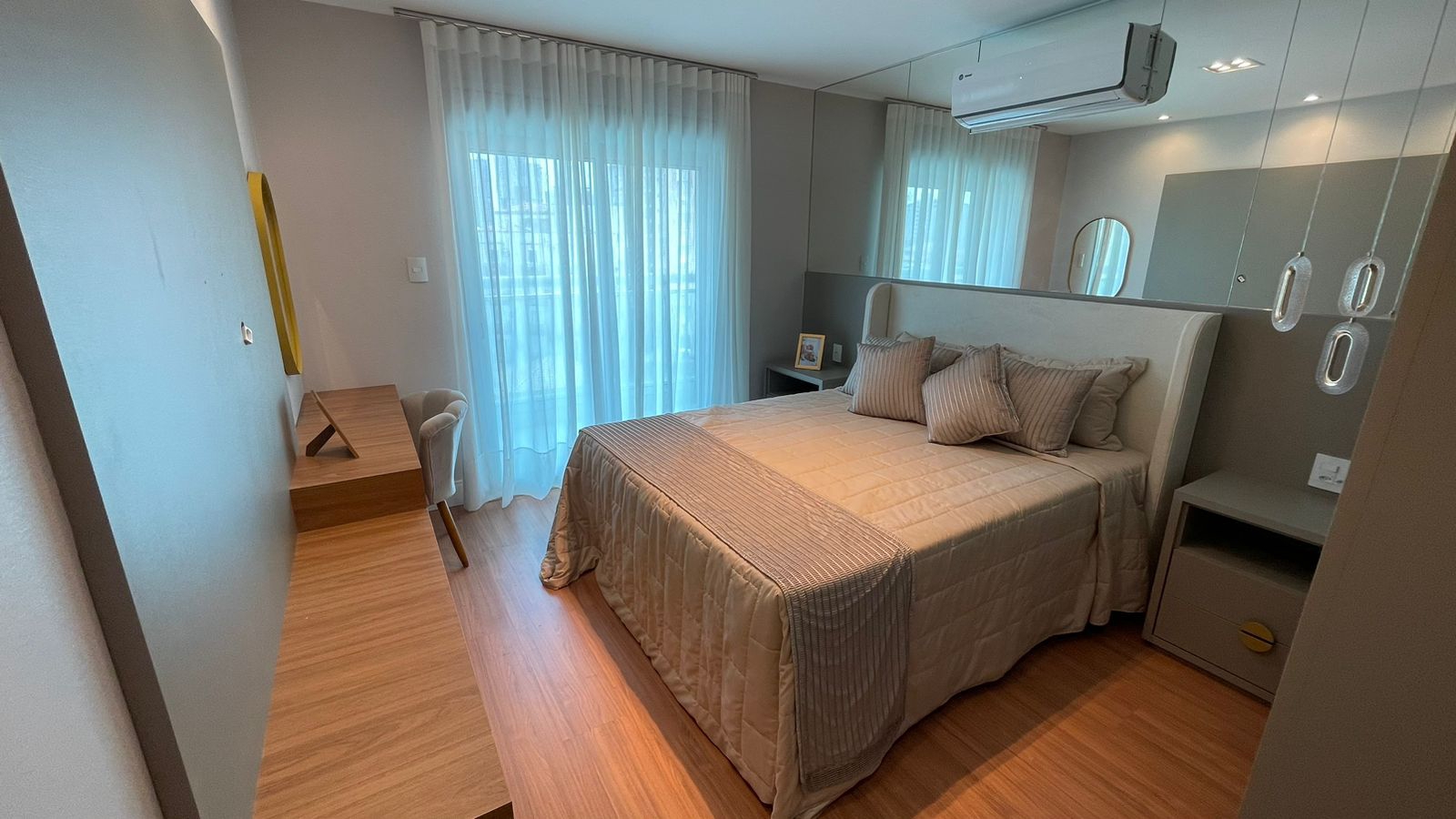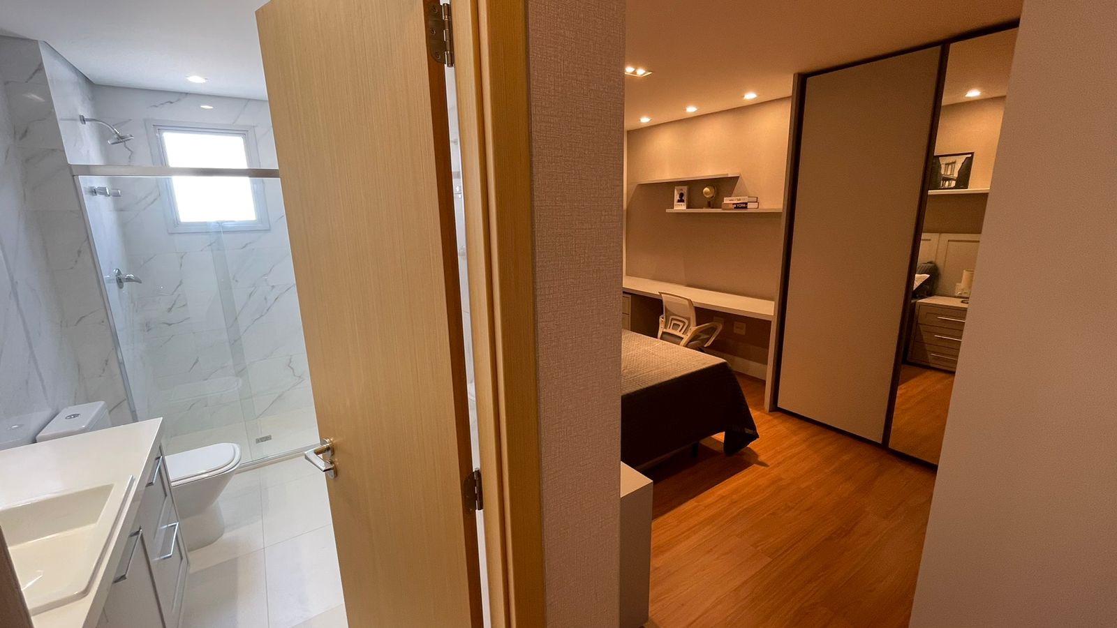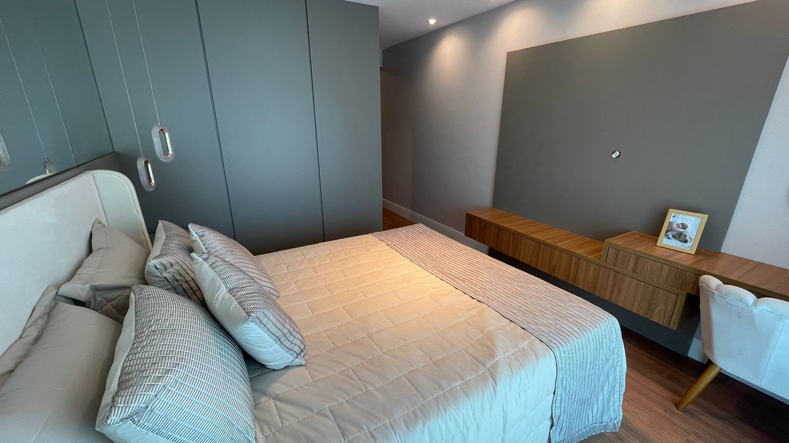 Ampla sala para dois ambientes com varanda gourmet e lavabo, cozinha independente com acesso para varanda, churrasqueira a gás com pedras vulcânicas, 3 suítes com persianas elétricas, sendo que a máster com closet e acesso para varanda, dependência completa, área técnica, entrada social e de serviço, 2 vagas de garagem demarcadas, estrutura completa para ar condicionado.