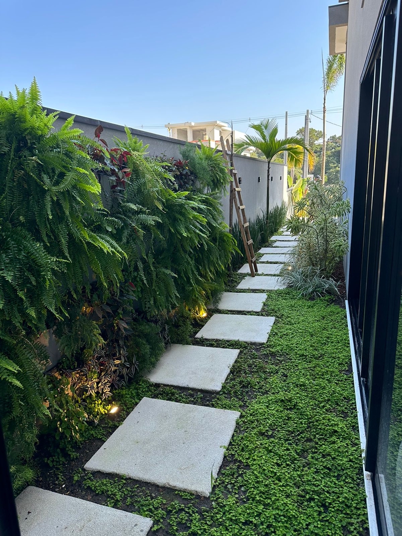 - Jardinagem completa, e jardim vertical na lateral esquerda da Casa, vista sala de Estar.