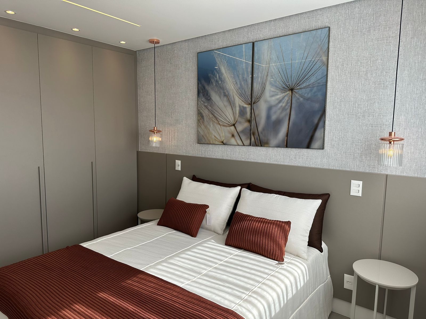 - Papel de parede nas cabeceiras das camas, nos quartos;