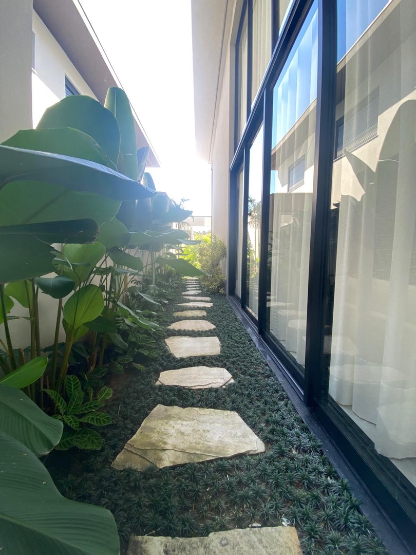 - Jardinagem completa, e jardim vertical na lateral esquerda da Casa, vista sala de Estar.