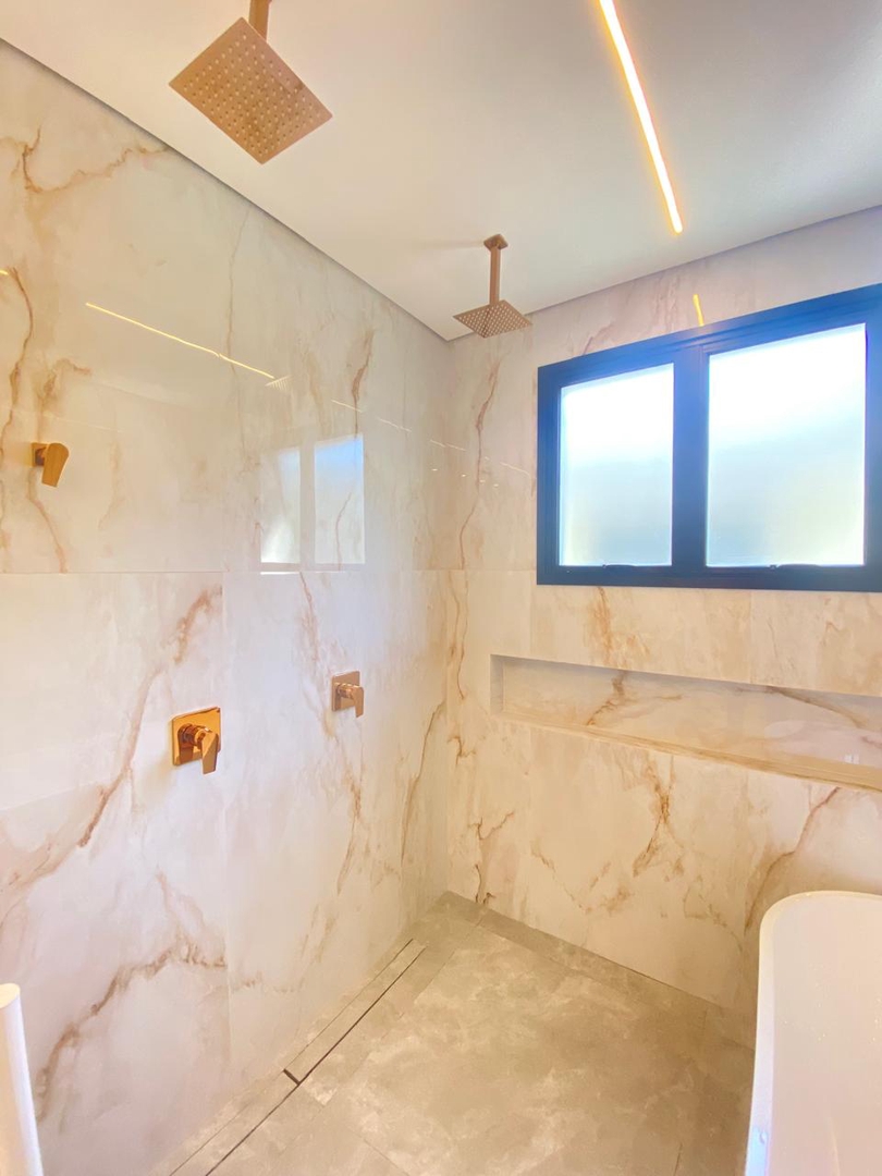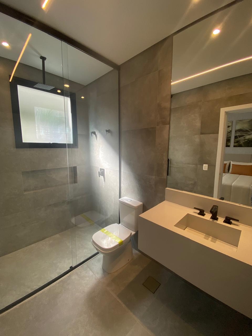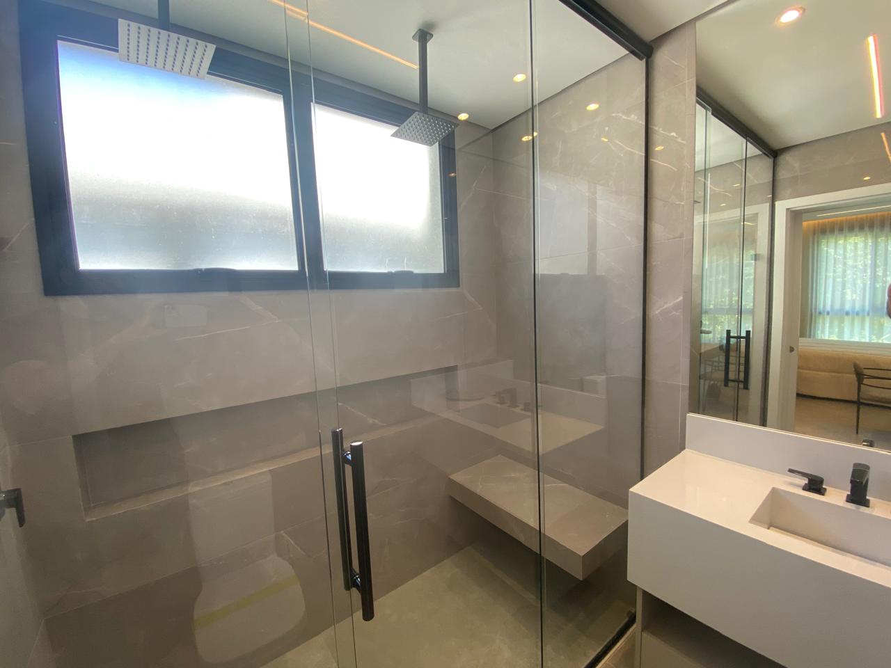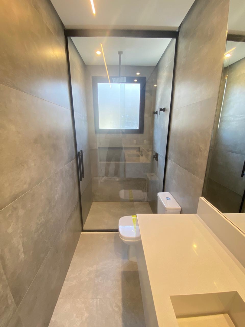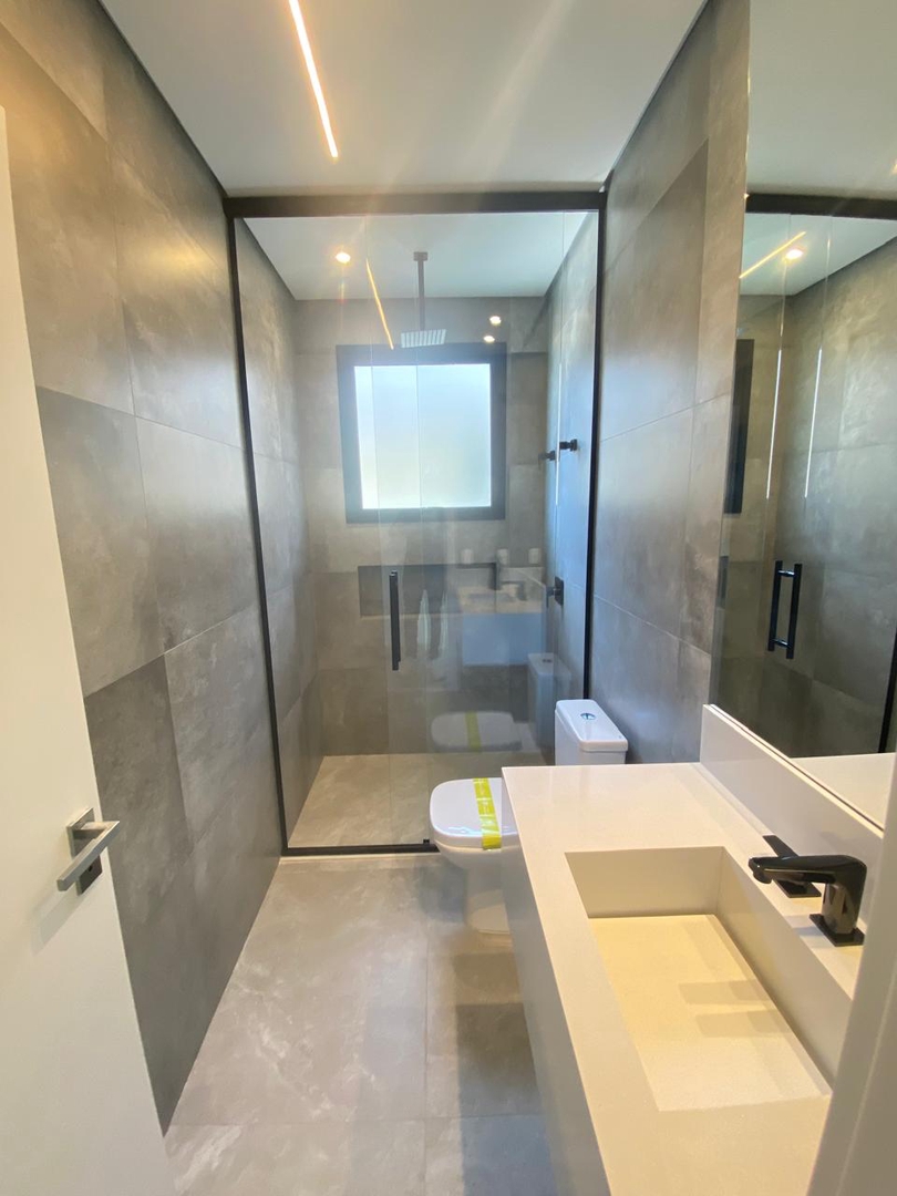 - Box de vidro temperado, nos banheiros das suites, até o teto;