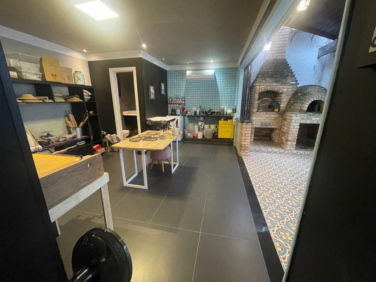 Espaço gourmet com churrasqueira e forno de pizza;