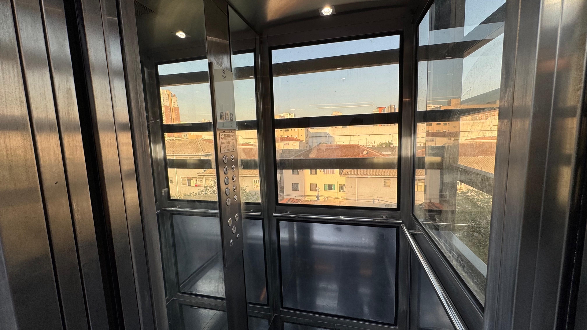Elevador inteligente panoramico que serve a todos os andares.