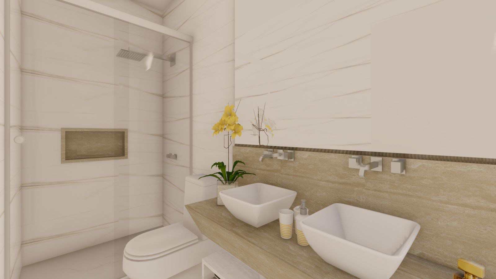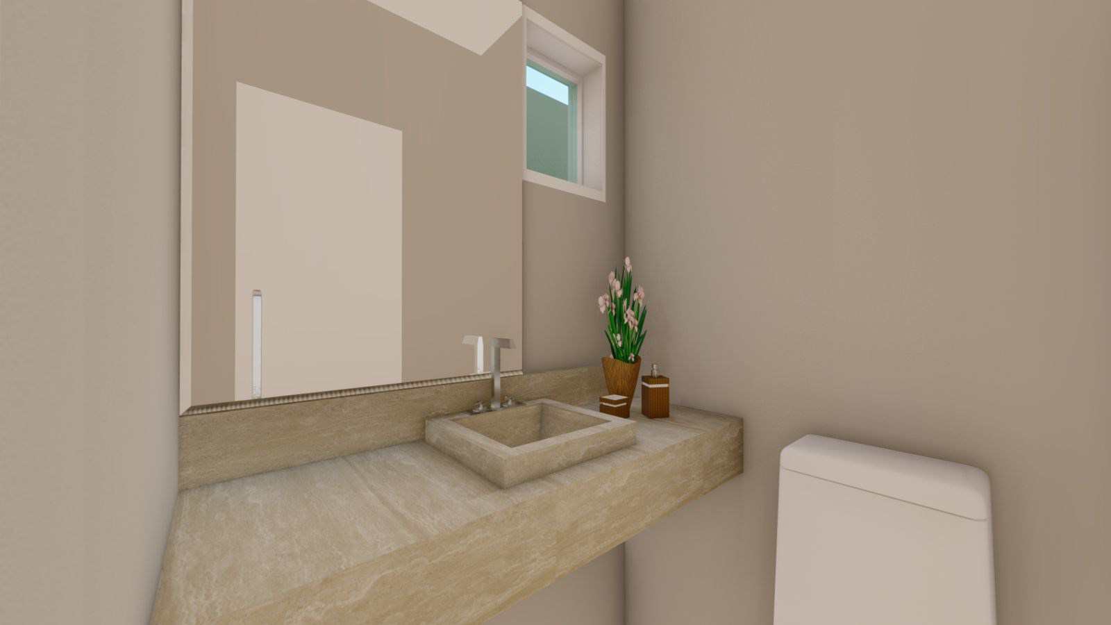 Para maior conveniência, a casa conta com um lavabo adicional, perfeito para visitantes. Não há necessidade de interromper o fluxo de atividades na casa para uso dos banheiros principais.