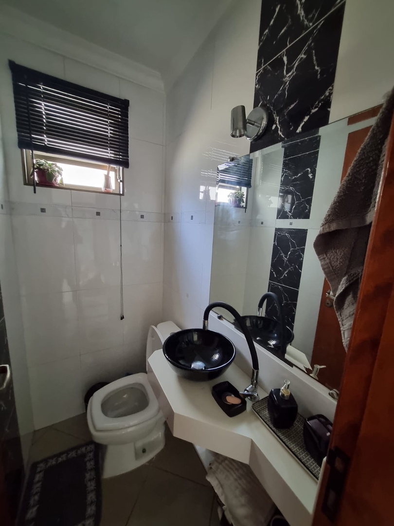 Subindo mais um lance, estão os três dormitórios, incluindo uma suíte confortável e um banheiro social que atende perfeitamente às demais acomodações.
