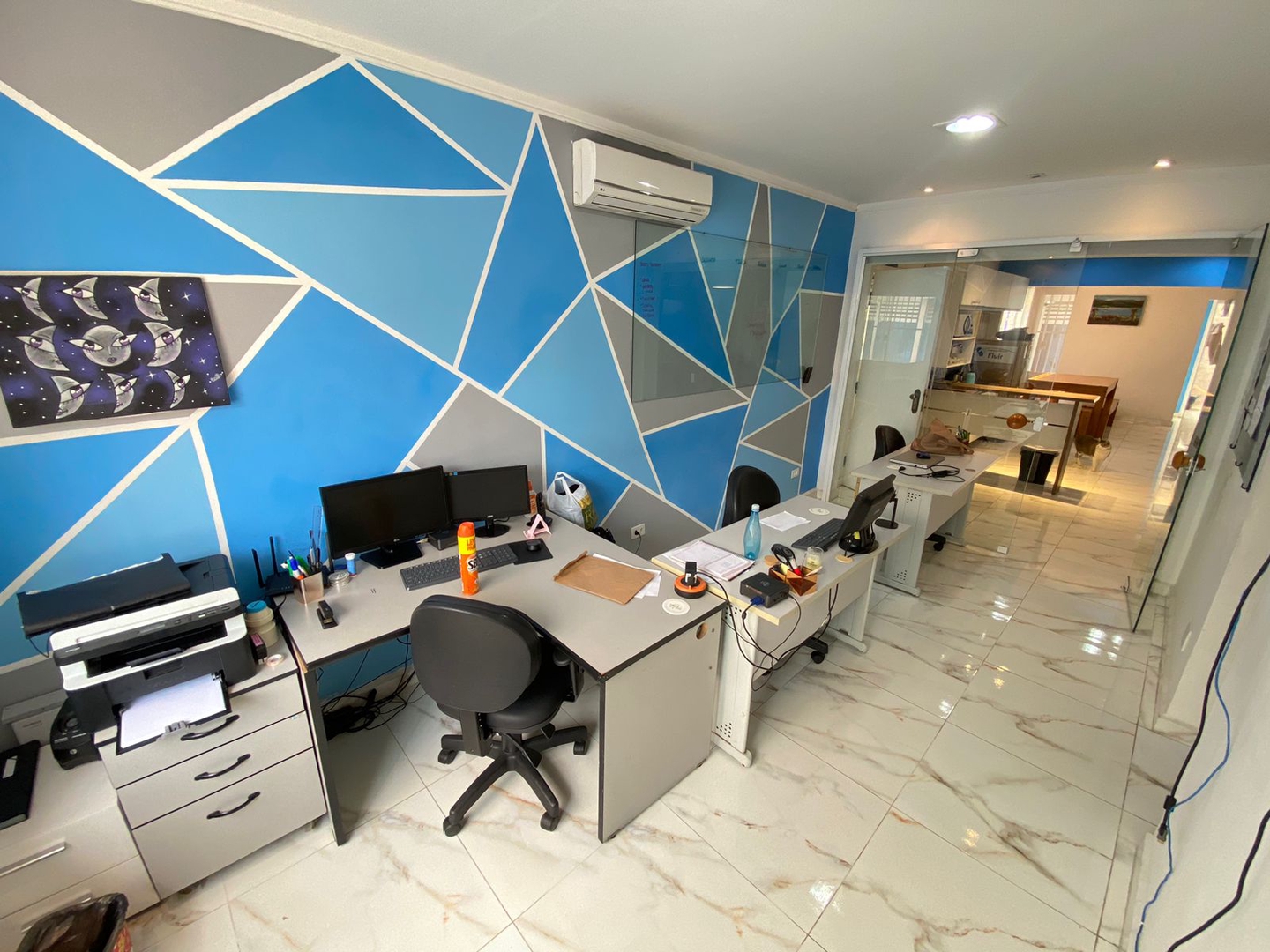 2 escritórios com divisórias;