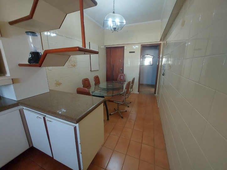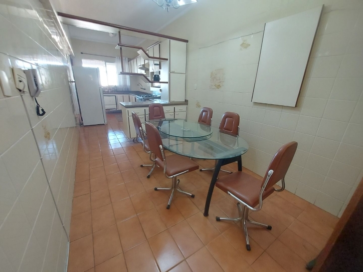 O 1 piso com sala 2 ambientes, varanda, 3 quartos, sendo 1 suíte, cozinha com copa, área de serviço com banheiro de empregada.