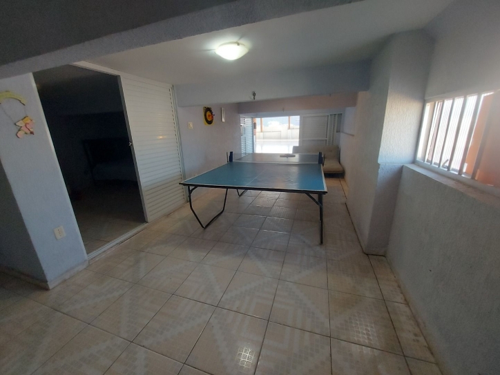 2 piso com área ampla para festa com uma segunda churrasqueira, banheiro, sala de jogos com um quarto, 2 salas, sendo 1 com 2 ambientes e banheiro com hidromassagem