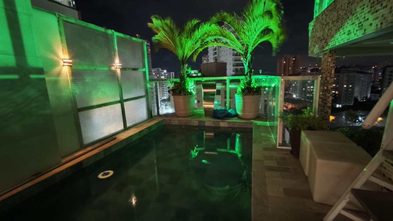 E que tal aproveitar uma churrasqueira gourmet premium? Ideal para reunir os amigos e familiares para uma confraternização. E para quem adora cinema, a cobertura oferece um telão para curtir aquele filme ao ar livre, proporcionando momentos inesquecíveis.