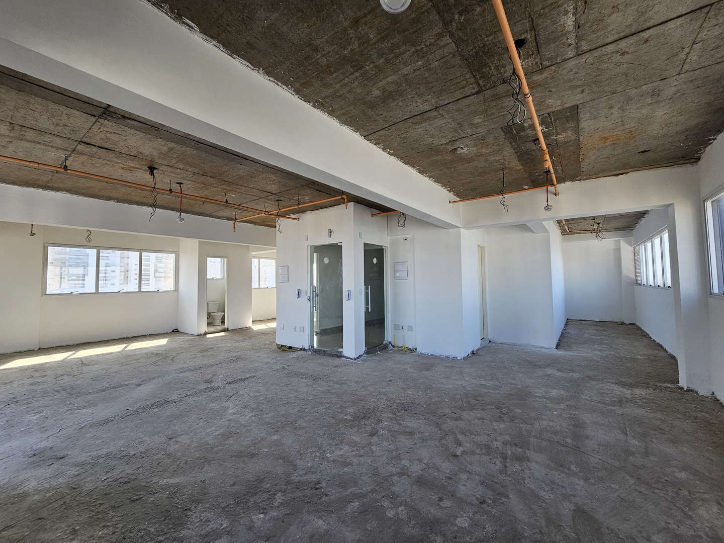 Amplo conjunto comercial, composto por 3 salas unificadas, totalizando 135 metros de área útil.