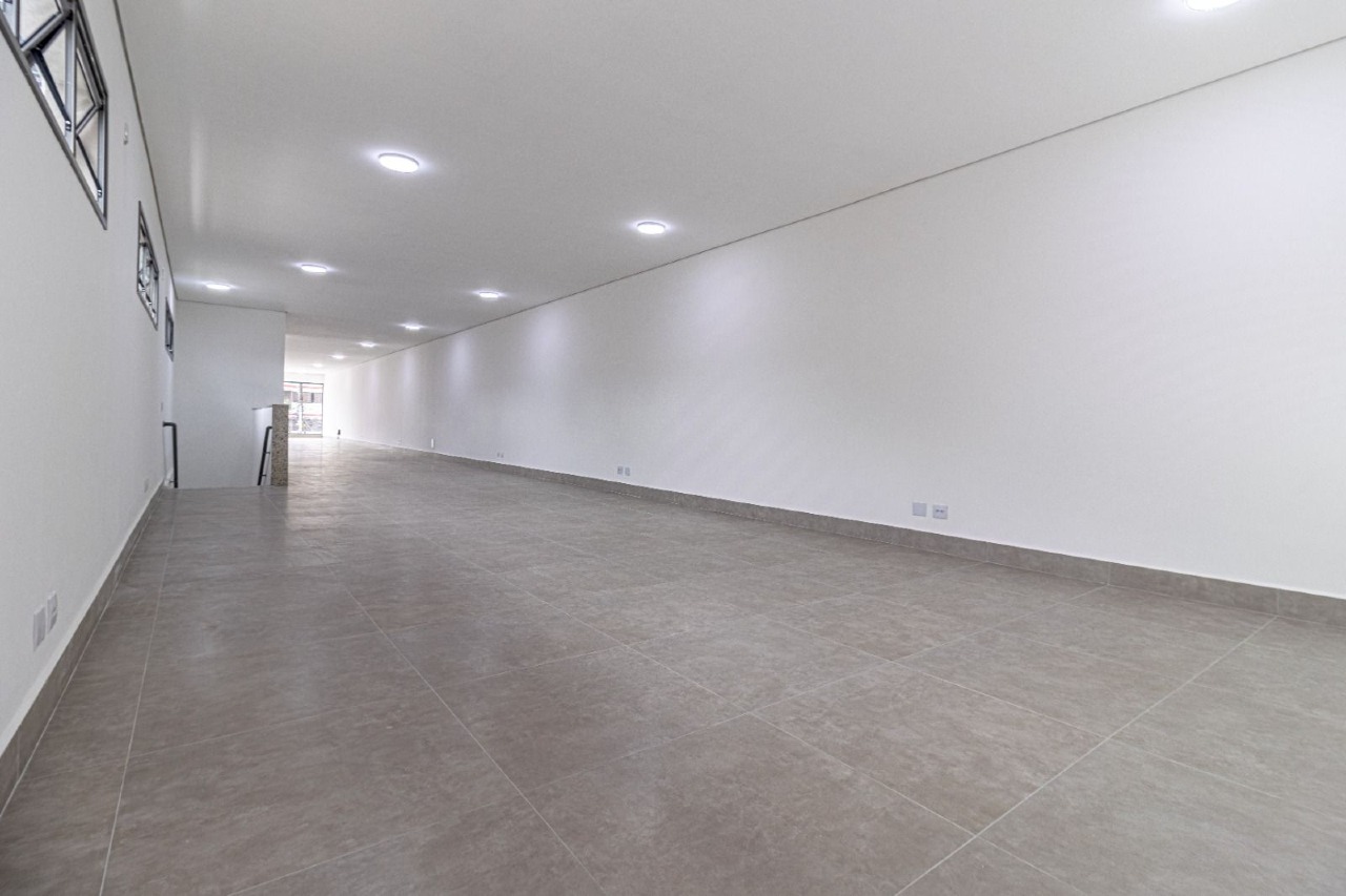 Vão livre com 350m², pé direito de 4,5m de altura, porta corrediça de ferro, 2 banheiros, despensa.